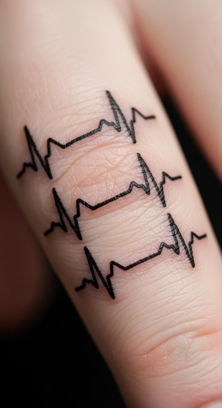 Heartbeat lines pulse with life and love, tracing a vital sign around your finger. It’s emotional and real.