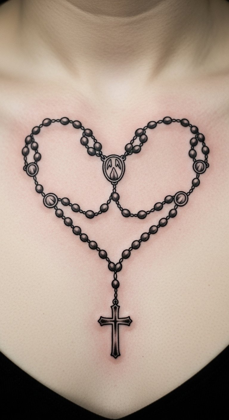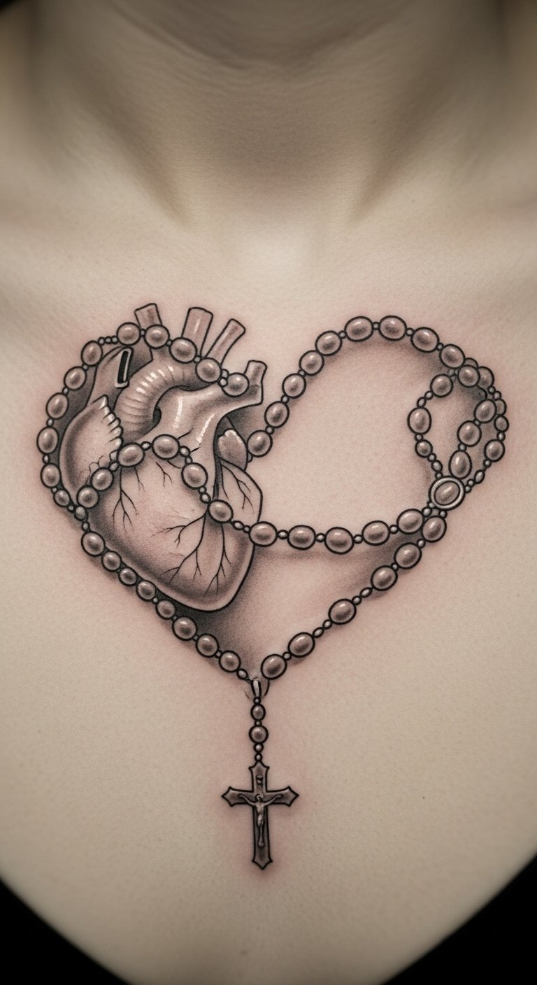 A heart and rosary fusion links emotion and faith. See beads shaping a heart on your chest. This design feels deeply personal. Draw fusions in a sketchbook. Use free fusion tools for ideas. Look for heart deals at shops. Craft a heart bead necklace. Highlight: heart fusion for warmth. Place it near your heart for meaning. Try with fabric art. This keeps it affordable. Let it foster your daily serenity.