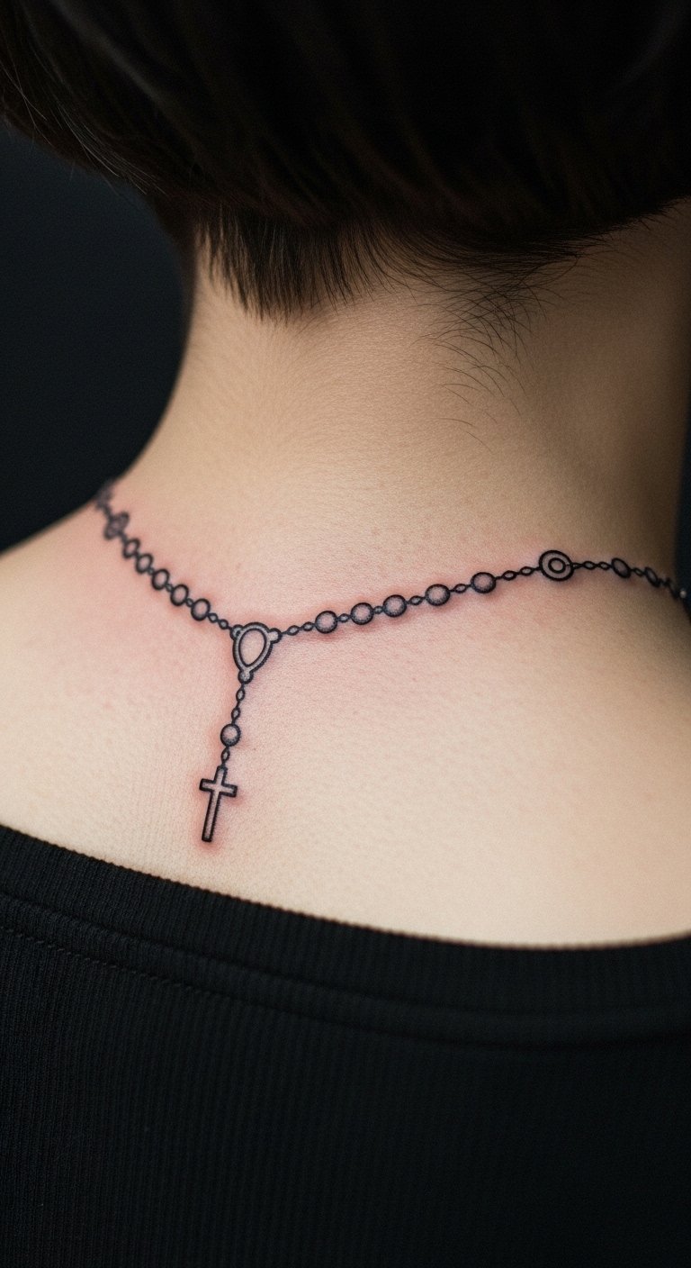 A subtle neck rosary hides in plain sight. Think faint beads on your neck. This design is low-key and thoughtful. Note subtle plans. Find free neck layouts. Check for subtle offers. Wear a bead choker. Key: neck rosary for discretion. Pick for your neckline. Practice with necklaces. This is simple. Carry it for quiet peace.