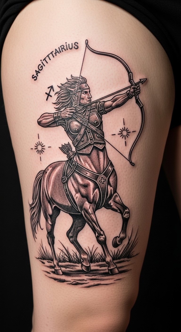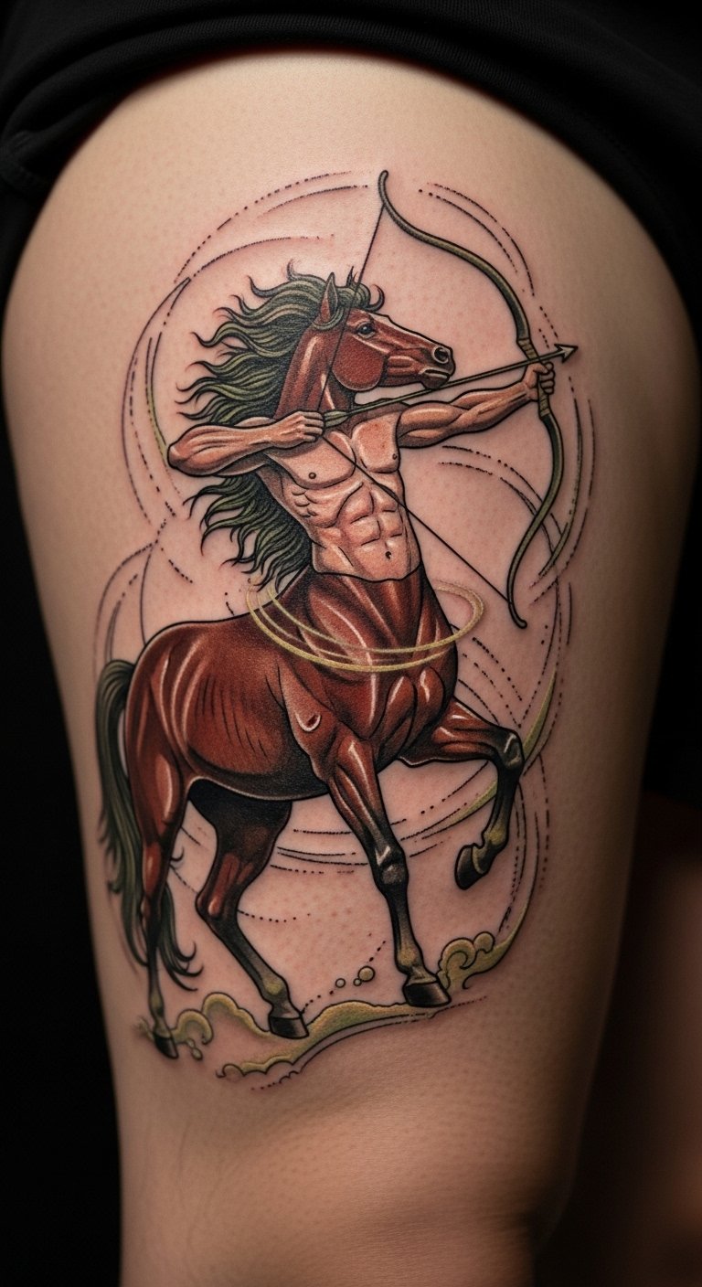 Go mythical with a centaur tattoo that tells a story of strength. This creature embodies Sagittarius traits like exploration and drive. Place it on your back for a larger canvas. Save money by researching free design apps on your phone. Try drawing it with markers before committing. Local artists often offer deals for simple outlines. Use washable inks for at-home trials. Keep the style clean for easy upkeep. Pair it with arrows for more meaning. This option lets you celebrate your free spirit without breaking the bank.