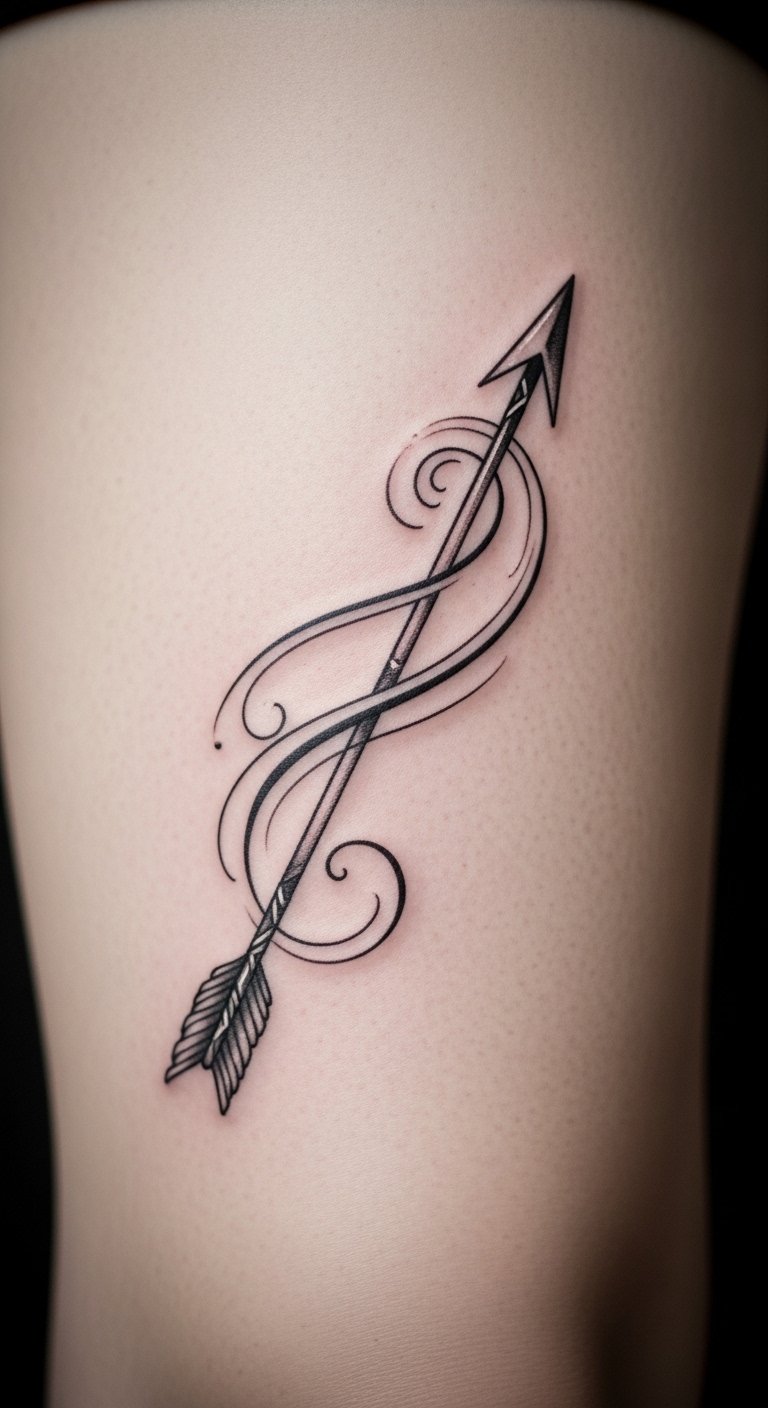 Design a flowing arrow to show your free spirit. Keep lines loose and fun. Place it on your leg. Sketch with free tools. This idea is simple and budget-friendly.