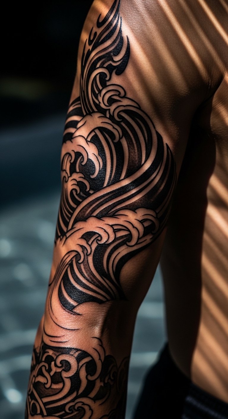 Wave designs promote calm and flow in life. Ink on your arm. Find artists in coastal areas. Bike to spots. Sketch waves simply. Use paper at home. Sit by water. Bold key: calm waves. Share calm tips. This tattoo brings peace.