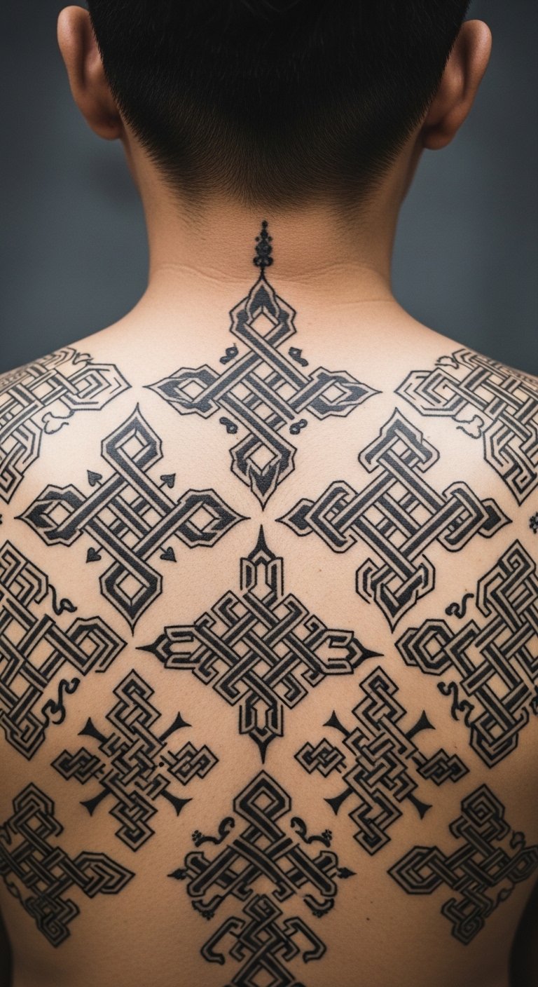 The eternal knot brings harmony and balance. Ink on your wrist. Peaceful areas. Tie knots. Draw loops. Use strings. Breathe even. Bold key: harmony knots. Live balanced. This design ties it all together. These Sak Yant tattoos offer real ways to build inner strength through simple, affordable steps. Pick one that fits, connect with artists, and start your journey today for lasting empowerment.