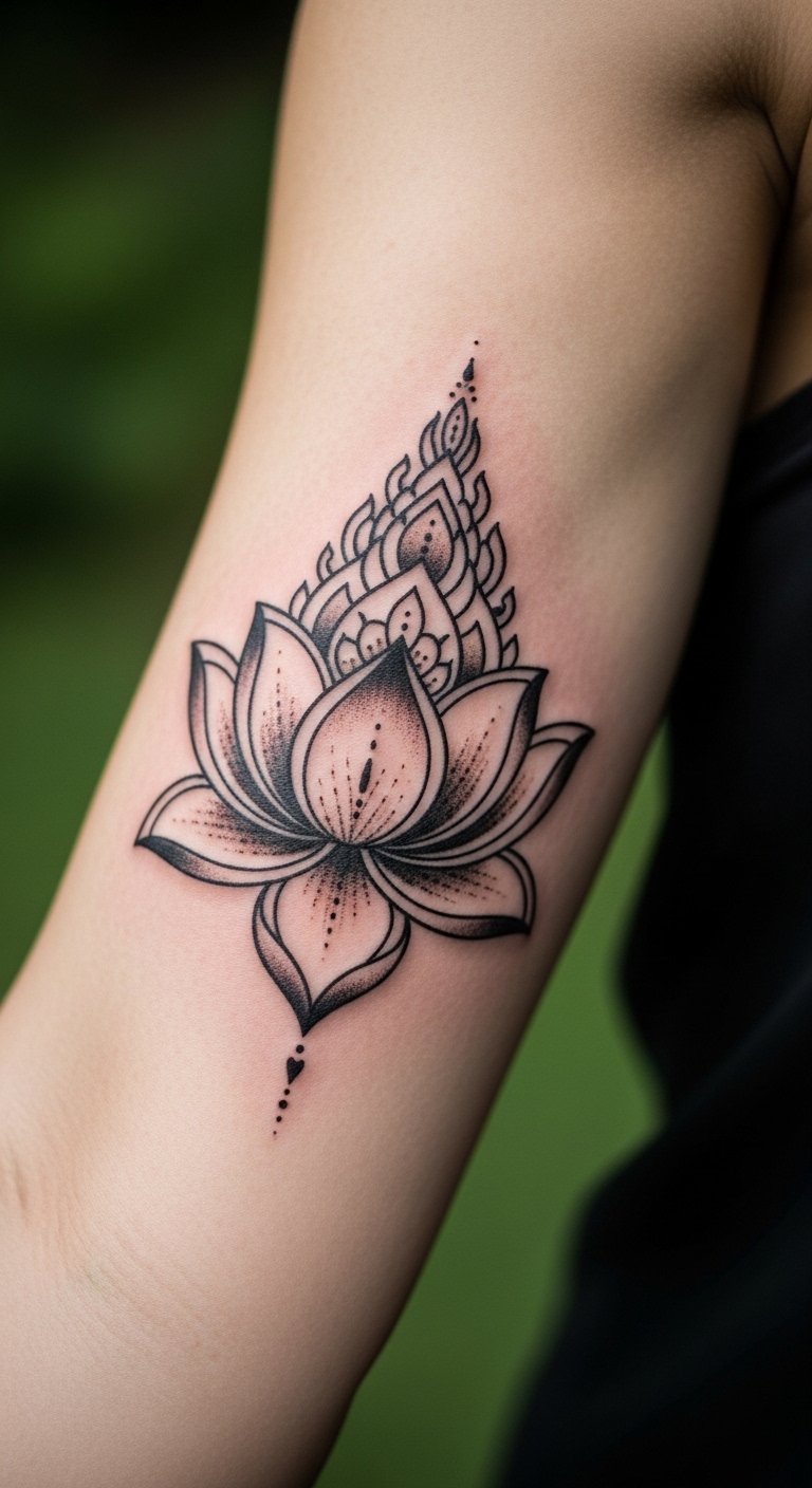 Lotus tattoos represent purity and growth. Ink on your arm. Visit botanical spots. Pack lunches. Sketch lotuses. Use garden leaves. Plant seeds. Bold key: purity lotus. Share growth stories. This design renews you.