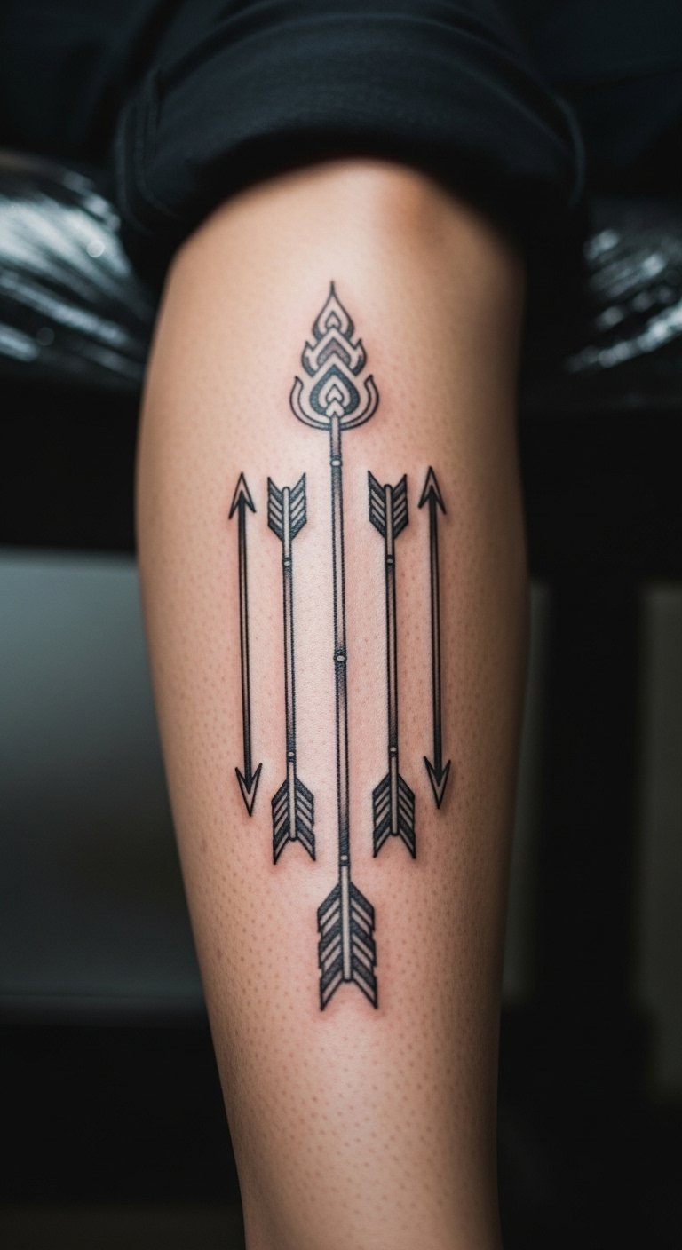 Arrow tattoos bring focus and determination. Put on your leg. Search for quick sessions. Run paths. Draw arrows. Use sticks. Aim targets. Bold key: focus arrows. Set goals. This design sharpens intent.