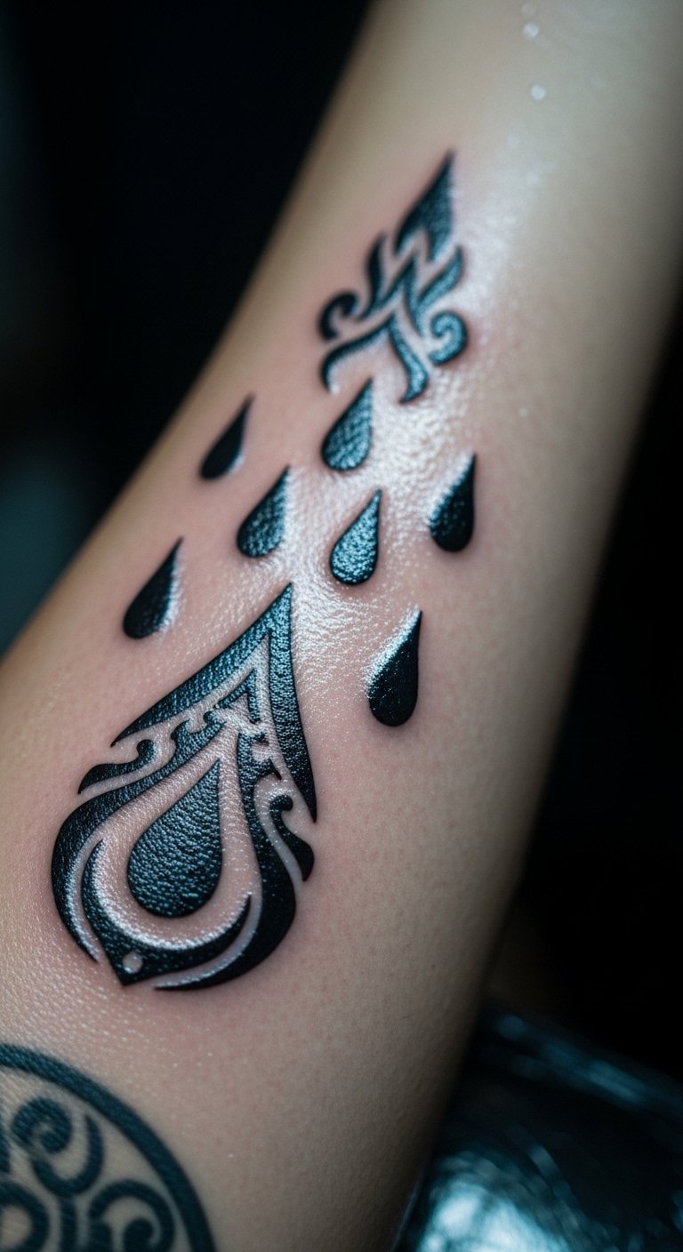 Water drop tattoos signify renewal and flow. Put on your arm. Rainy day finds. Walk rain. Draw drops. Use water. Splash fun. Bold key: renewal drops. Refresh habits. This design washes away old.