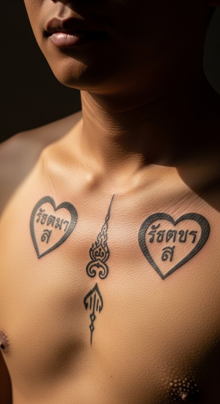 The Hah Taew brings five lines for luck and charm. Place it on your arm for easy visibility. Look for artists in Bangkok markets. Save money by traveling off-season. Draw these lines on paper first for a DIY trial. Use basic pens to mimic the look. Add a quick blessing by repeating a positive phrase. Bold key: luck lines. Share photos with your circle. This design sparks confidence in everyday life.