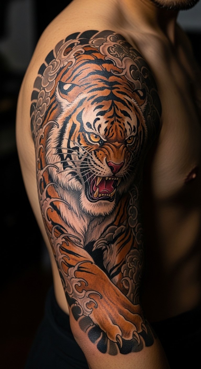 A tiger companion alongside a samurai brings ferocity and loyalty to life. This design shows the two united, representing protection and wild spirit. Try drawing a tiger’s stripes next to a simple warrior figure on paper—use what you have at home. Look for artists offering bundle rates, possibly under $110. Opt for your arm to show it off easily. Bold aspect: tiger companion adds protective vibes. Customize with your favorite colors via temporary tattoos first. This approach is straightforward and cost-effective.