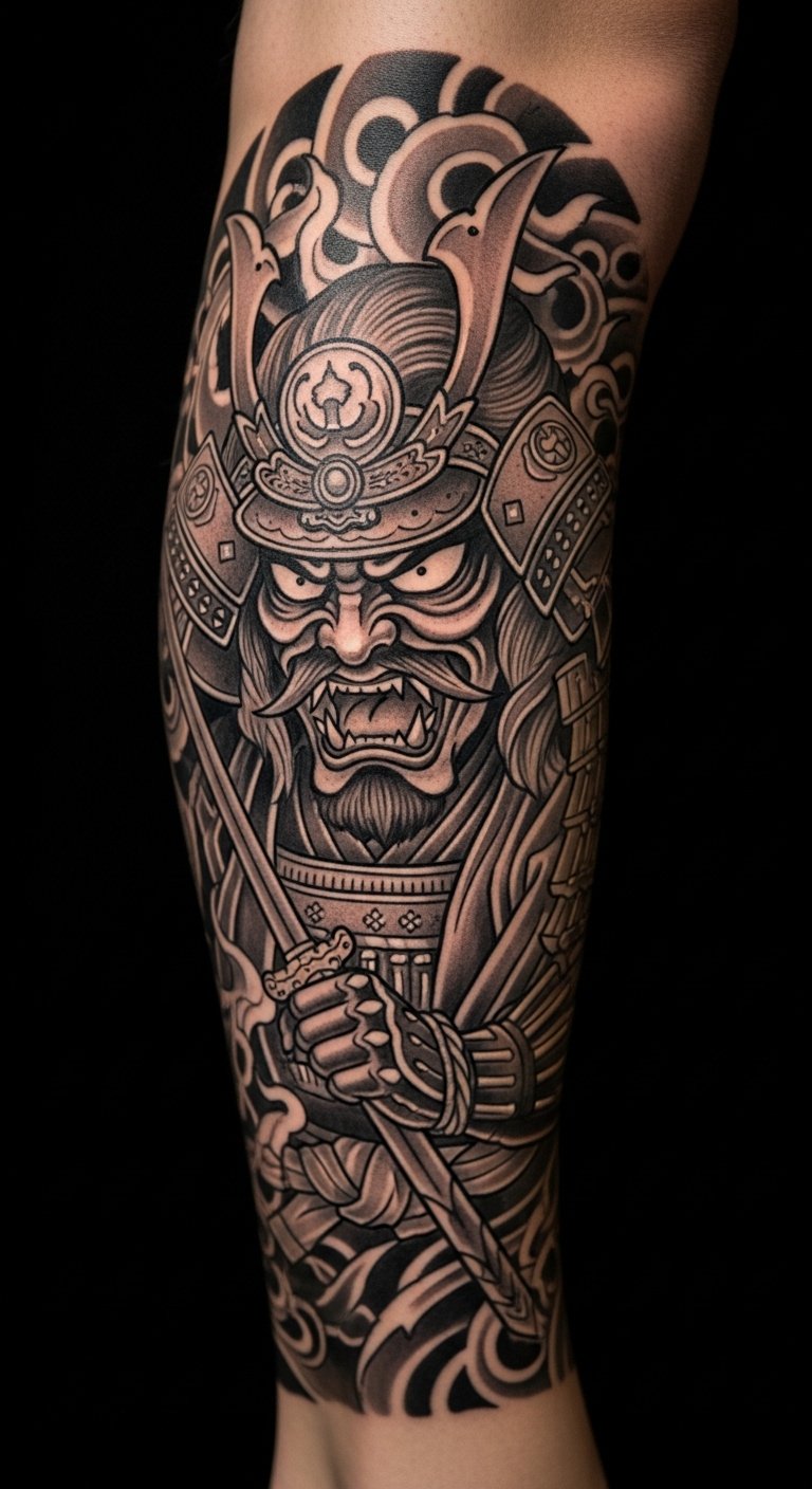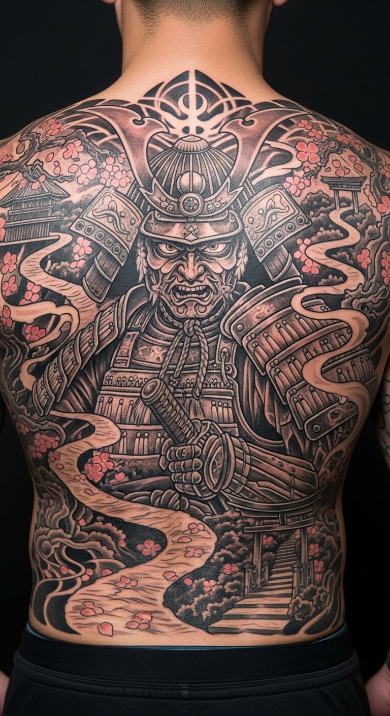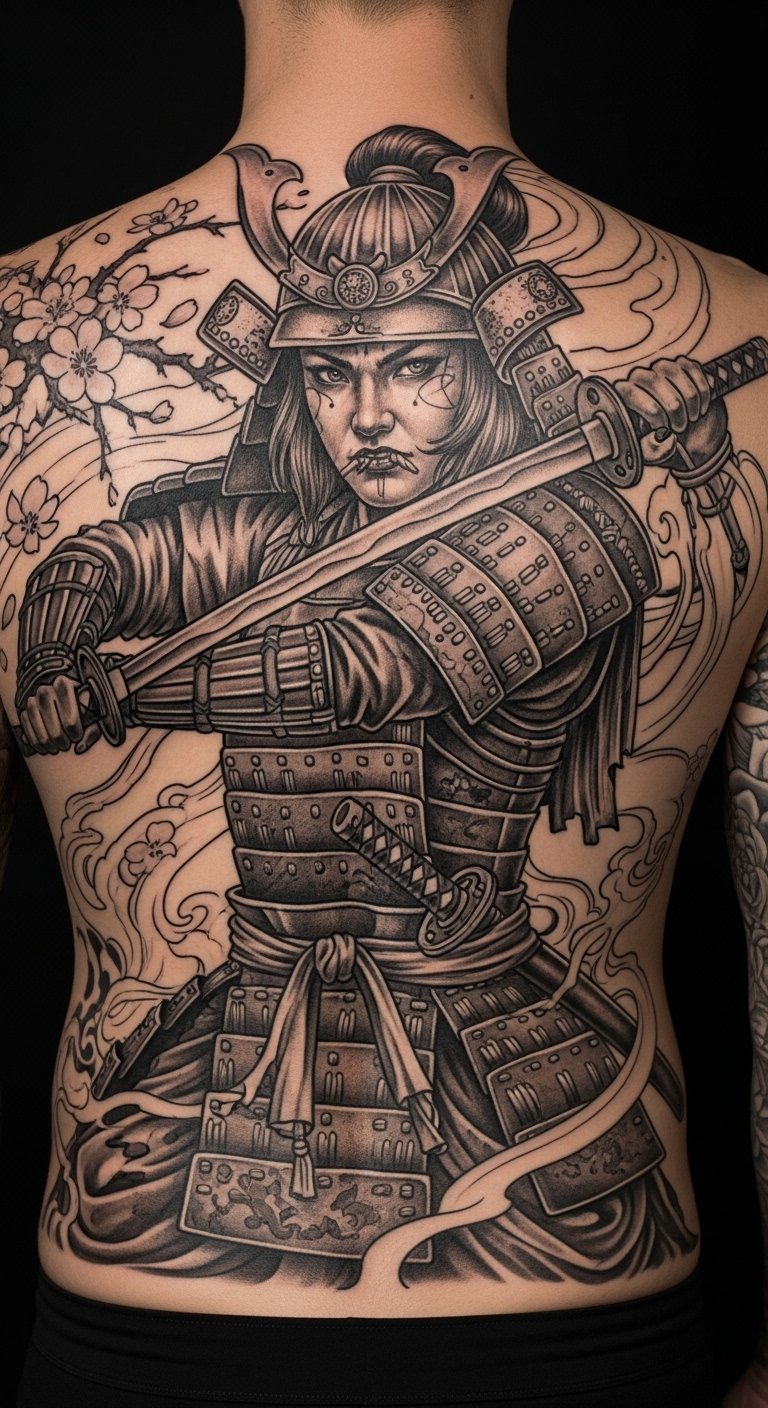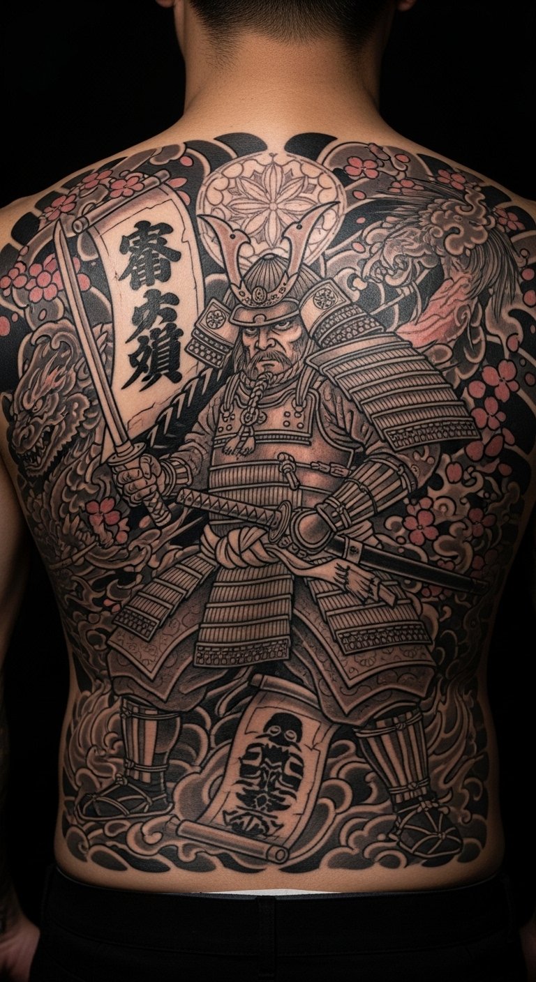 Ancestral tribute ink features a samurai with family symbols, honoring roots. This design connects you to history in a personal way. Sketch family icons next to a warrior on paper—costs nothing. Seek out affordable artists online, around $130 for medium size. Place it on your back for a private tribute. Bold ink: ancestral tribute strengthens heritage ties. Add custom touches with home drawings. Keep it practical.