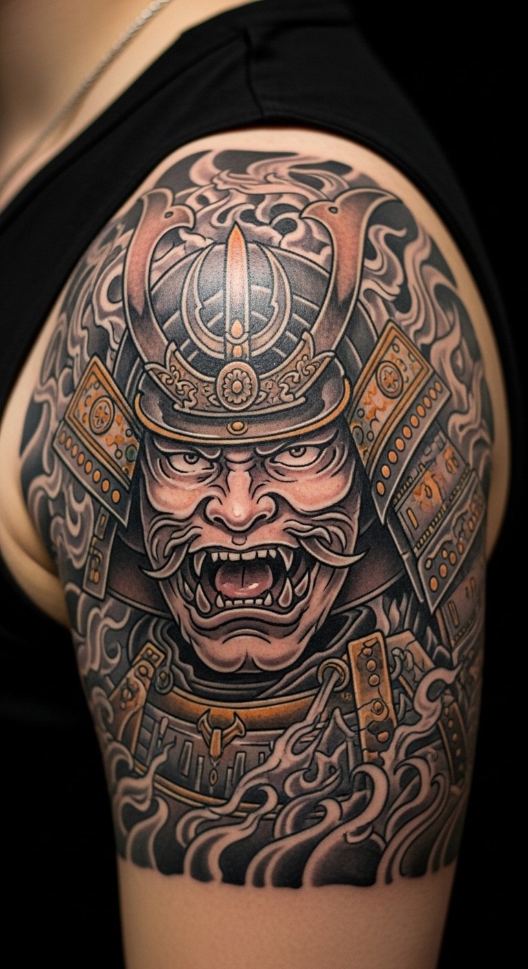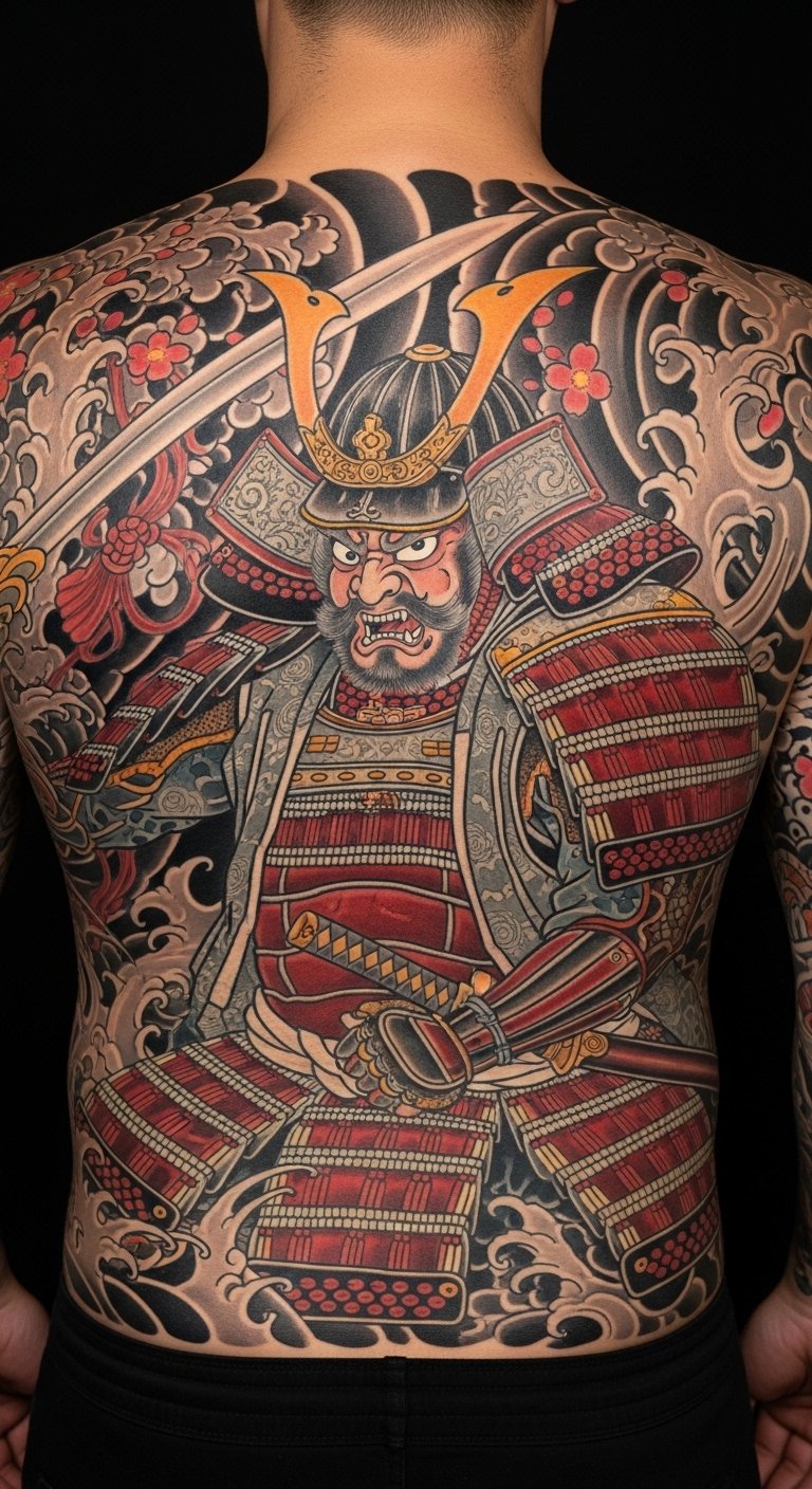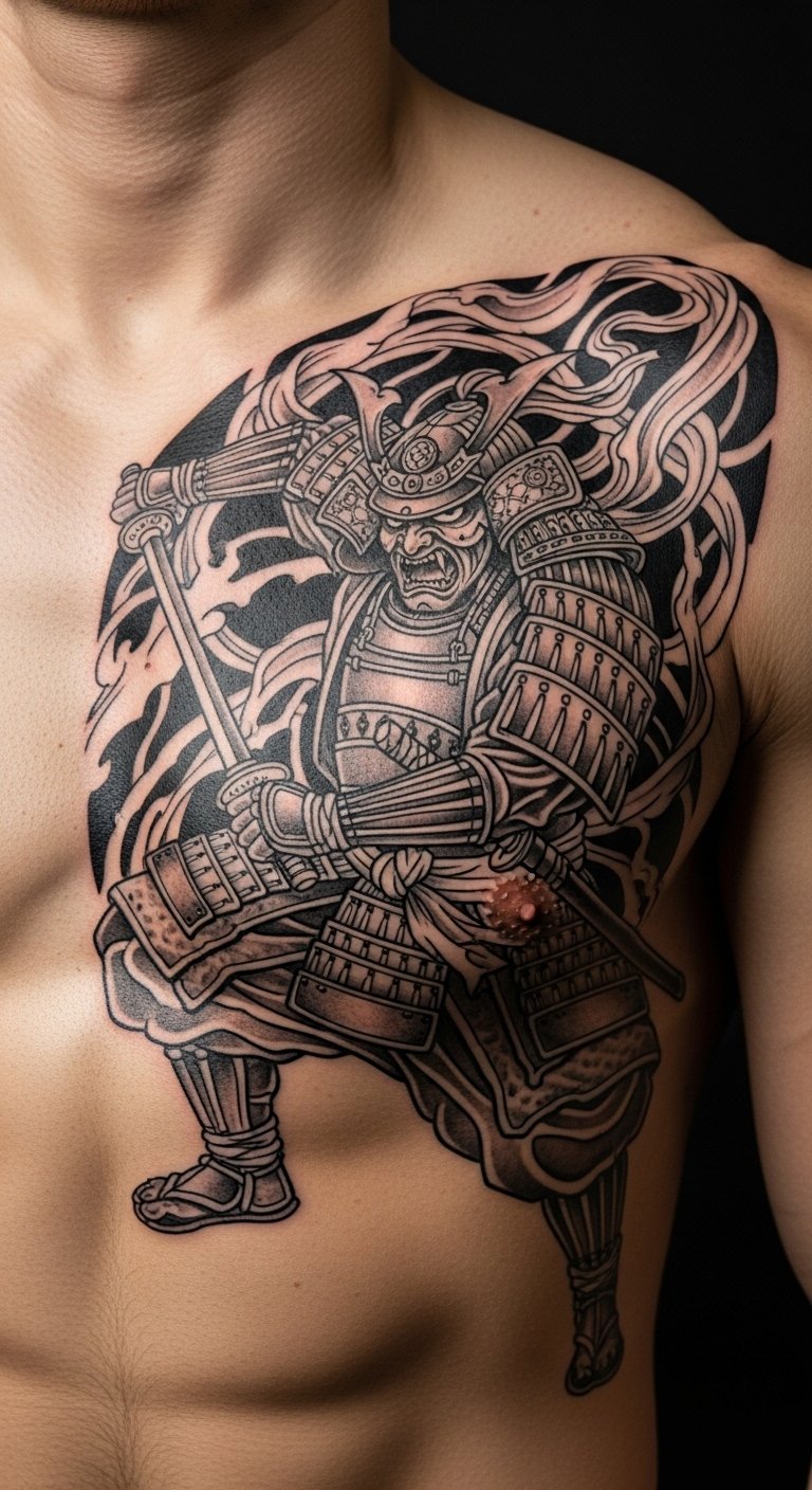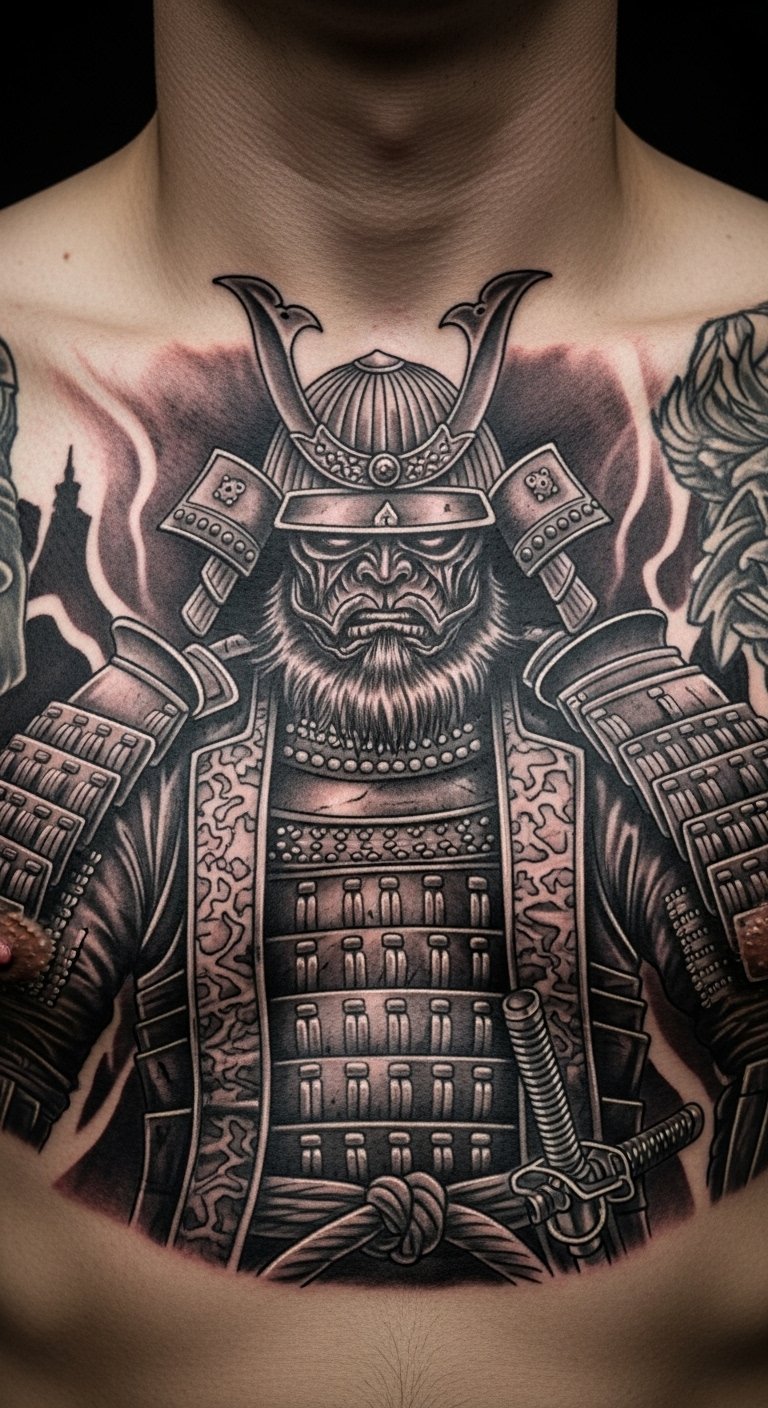 Ancestral tribute ink features a samurai with family symbols, honoring roots. This design connects you to history in a personal way. Sketch family icons next to a warrior on paper—costs nothing. Seek out affordable artists online, around $130 for medium size. Place it on your back for a private tribute. Bold ink: ancestral tribute strengthens heritage ties. Add custom touches with home drawings. Keep it practical.