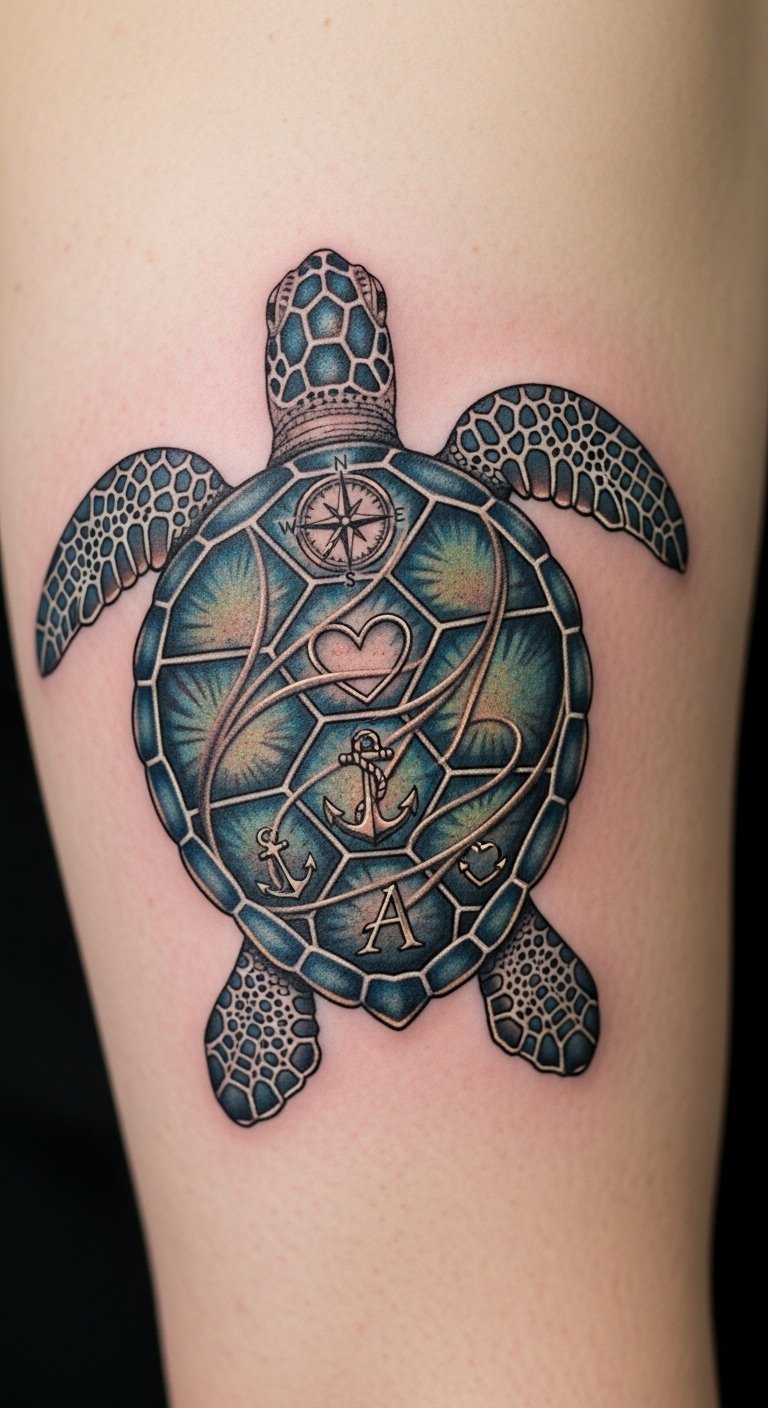 10. Personalized Sea Turtle with Nature Symbols