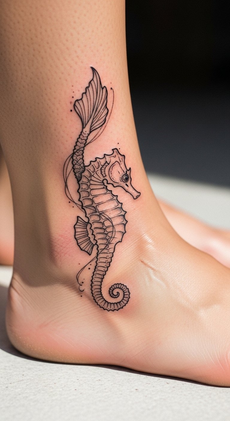 Focus on fine details for an elegant seahorse. It brings a touch of class. Draw with precision tools at home. Free tutorials guide you. Keep it straightforward. Find deals for $70. Add subtle shades. Preview with affordable kits. Choose the ankle for elegance. This style impresses without extras.