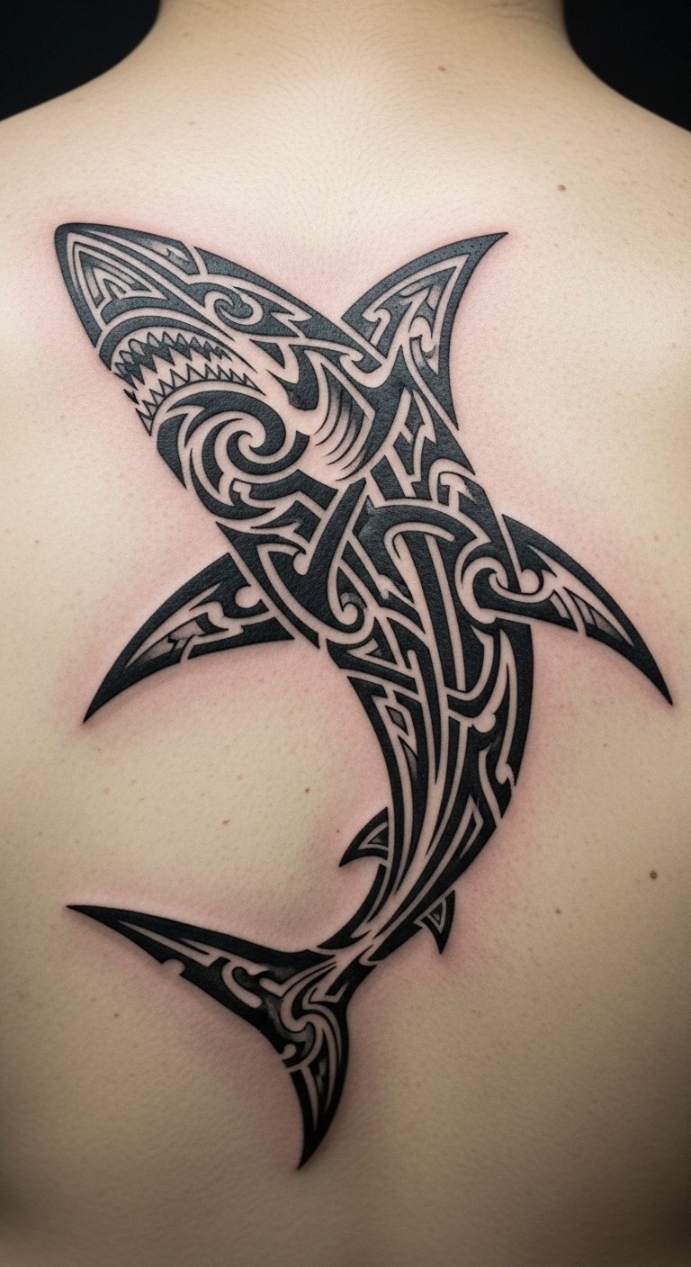 Try a tribal shark motif for cultural edge. Patterns weave around the shark. Trace tribal designs on paper. Follow curves. Steady hand. Tribal shark tattoo fits backs. Choose based on pattern flow. Personalize with symbols. Find local experts cheaply. Use templates for practice. Regular care maintains it. This design connects heritage simply, at low cost.