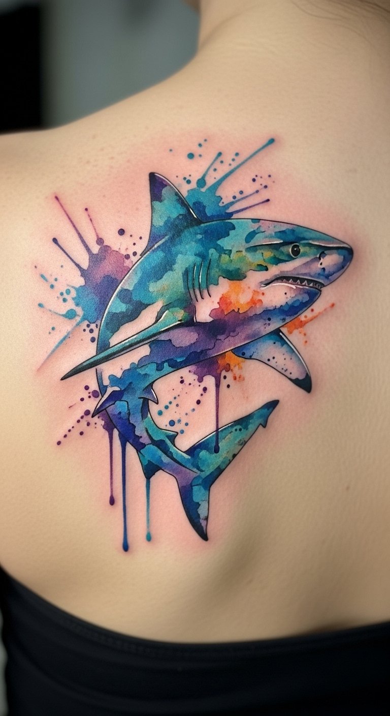 Select watercolor shark style for soft artistry. Blend colors like paint. Experiment on paper. Use washes. Creative fun. Watercolor shark tattoo on shoulder blades flows. Decide on blend spots. Add watery effects. Search for style discounts. Test with watercolors. Gentle products preserve it. This approach brings art to you affordably.