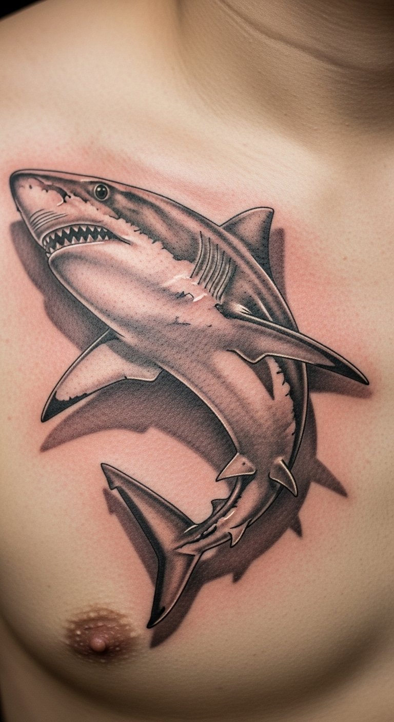 Try 3D effect shark tattoo for pop. Shading adds depth. Practice shadows on paper. Layer carefully. Cool effect. 3D shark tattoo on chests pops. Pick prominent areas. Add fins creatively. Seek 3D pros cheaply. Test with apps. Moisturize regularly. This method brings depth without much expense.
