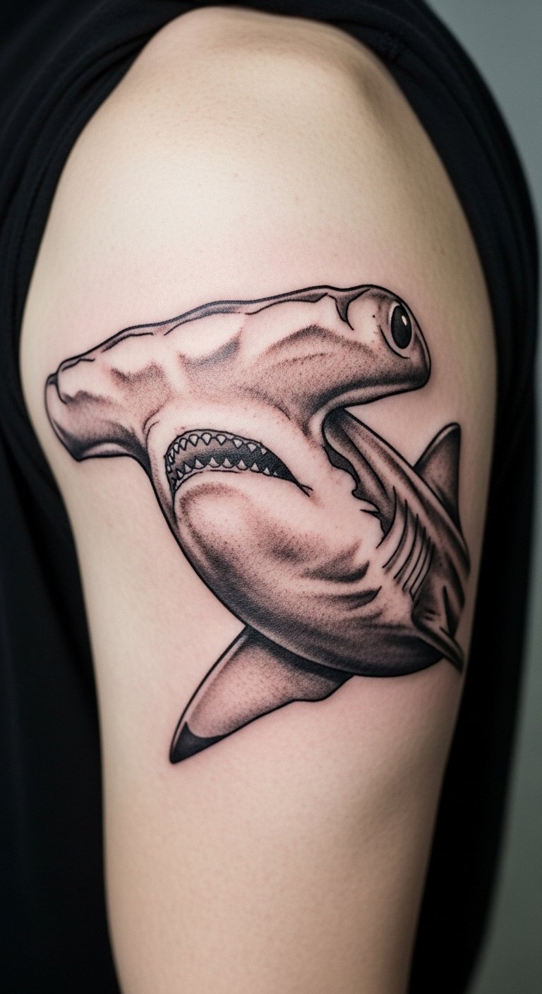 Choose hammerhead shark profile for uniqueness. Highlight the head shape. Sketch the profile. Emphasize features. Distinctive. Hammerhead shark tattoo on upper arms fits. Decide on profile views. Personalize with extras. Look for unique deals. Draw it out first. Basic care keeps it. This design stands out affordably.