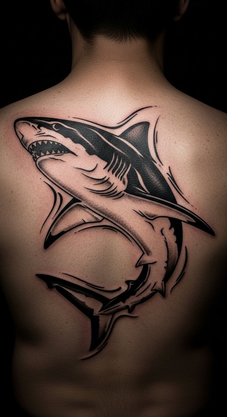 Opt for black ink shark on the back for statement. Solid ink covers boldly. Outline on paper. Fill in. Strong. Black ink shark tattoo on backs states power. Pick broad spots. Keep it pure. Look for ink deals. Test outlines. Moisturize daily. This choice makes a mark simply.