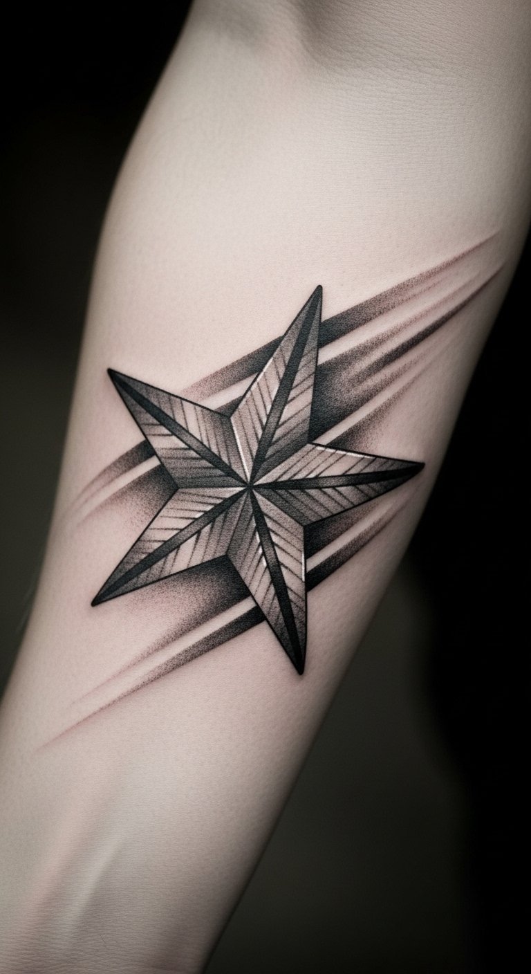 Nautical stars symbolize safe paths, inspired by sailors. Get one on your arm for a bold statement. Opt for a basic version to save money, perhaps $50 at a community tattoo event. Combine it with a wave for a nautical theme using free design tools online. Quick idea: practice with a temporary nautical decal, available for $1. This tattoo keeps you grounded. Example: draw it on a map during a road trip prep. Use short sessions if you’re nervous, splitting costs over time. It’s practical and motivating for adventurers.