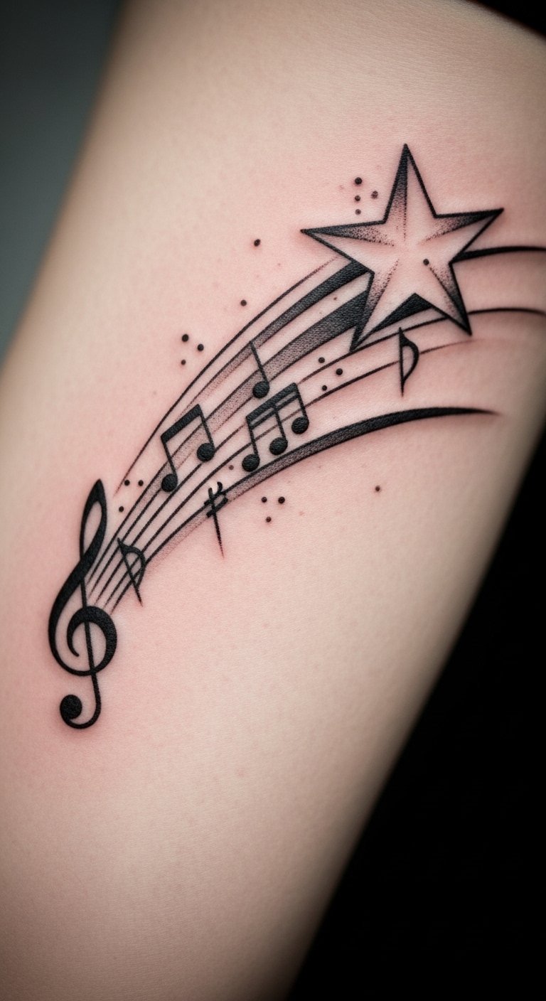 Combine stars with music notes to tell your story. Place on your arm for visibility. Budget at $50 for the pair. Use free apps to plan. DIY with drawing tools first. It captures passions vividly.