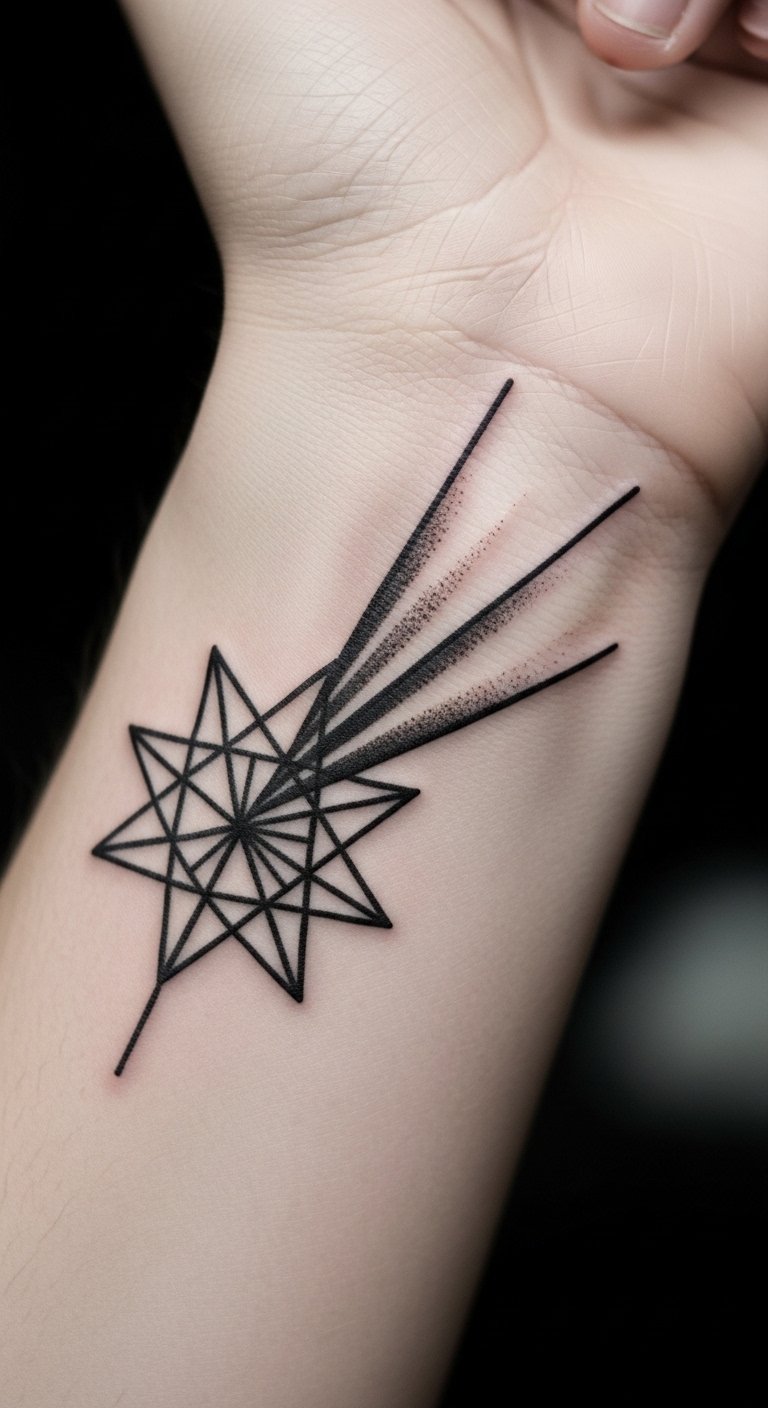 Shooting stars often mean good luck, drawing from stories around the world. Get one to invite positive vibes into your life. Pick a spot like your ankle for easy hiding or showing off. Save money by opting for a flash design at a walk-in shop, which might run $30-60. Add a cultural twist, like a simple arrow for Native American vibes, using free app designs to plan it. Short tip: use henna as a temporary version first; kits are under $10 and last a week. This tattoo acts as a daily charm. For example, draw it on with washable markers during a quiet evening to reflect on your wishes. Keep the design minimal to avoid extra fees. Real-life hack: pair it with a lucky charm bracelet for under $15. It’s all about making luck feel real and accessible.
