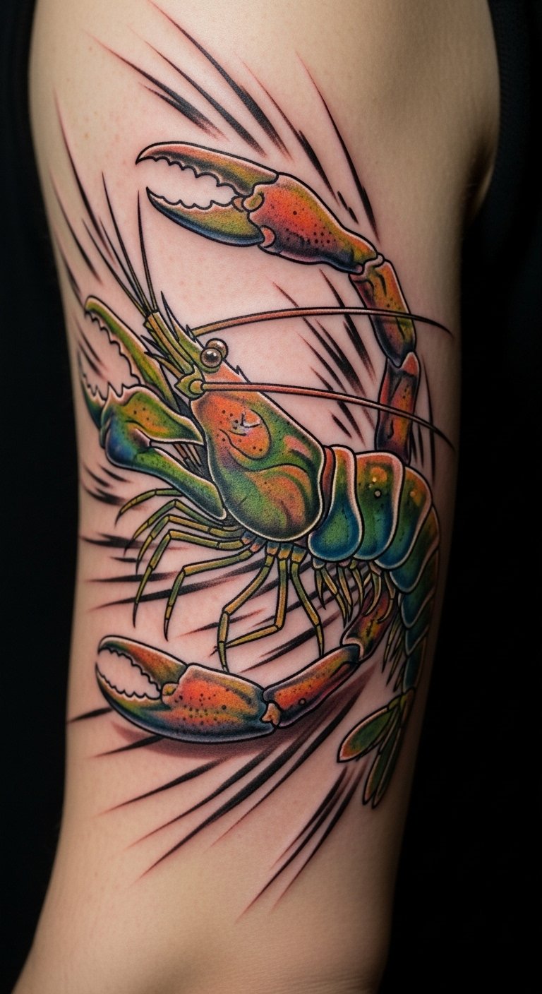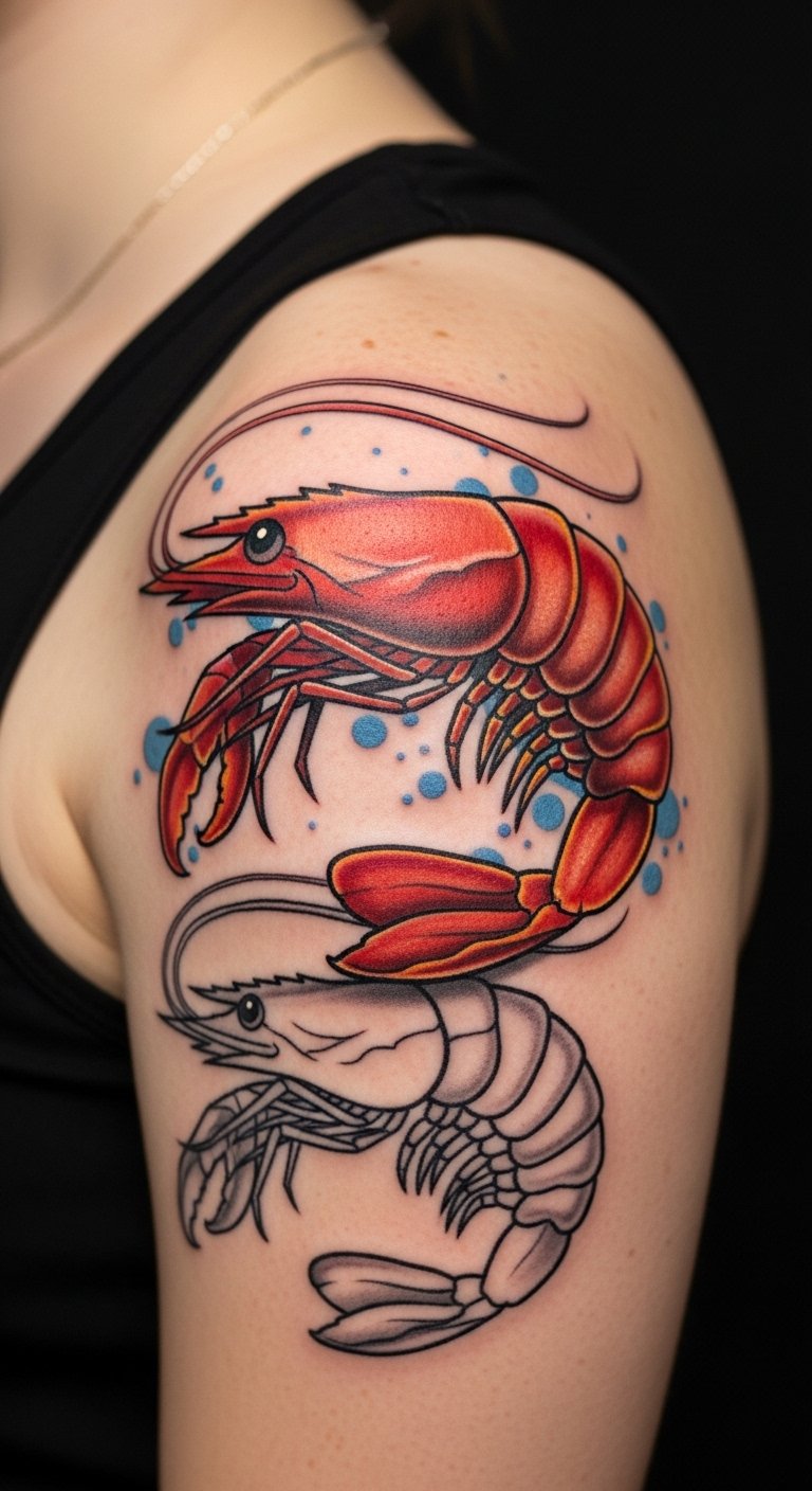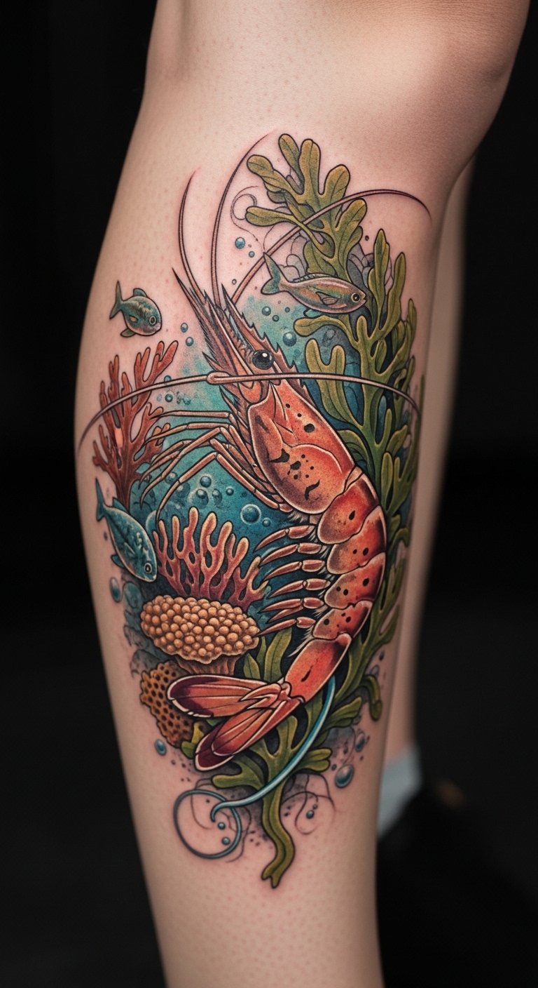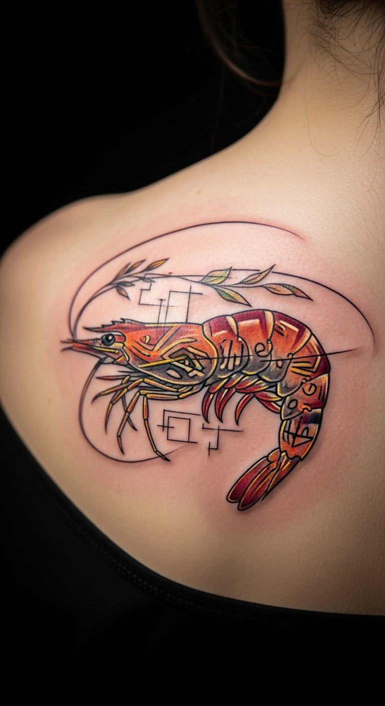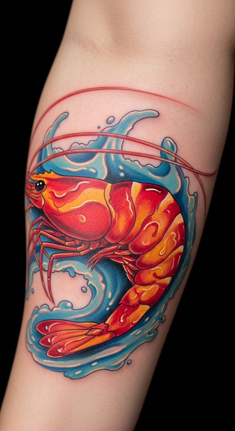 Vibrant Colored Shrimp Tattoo for Bold Looks