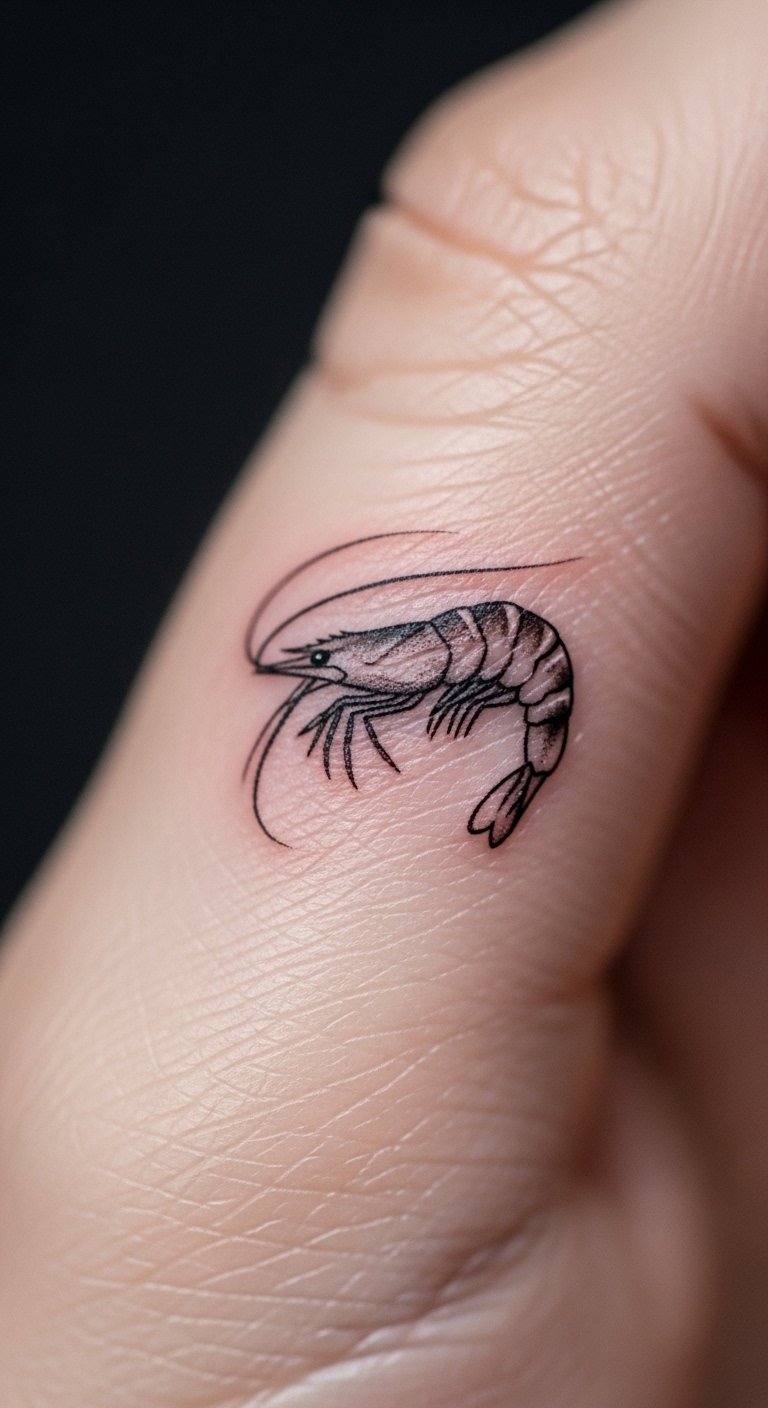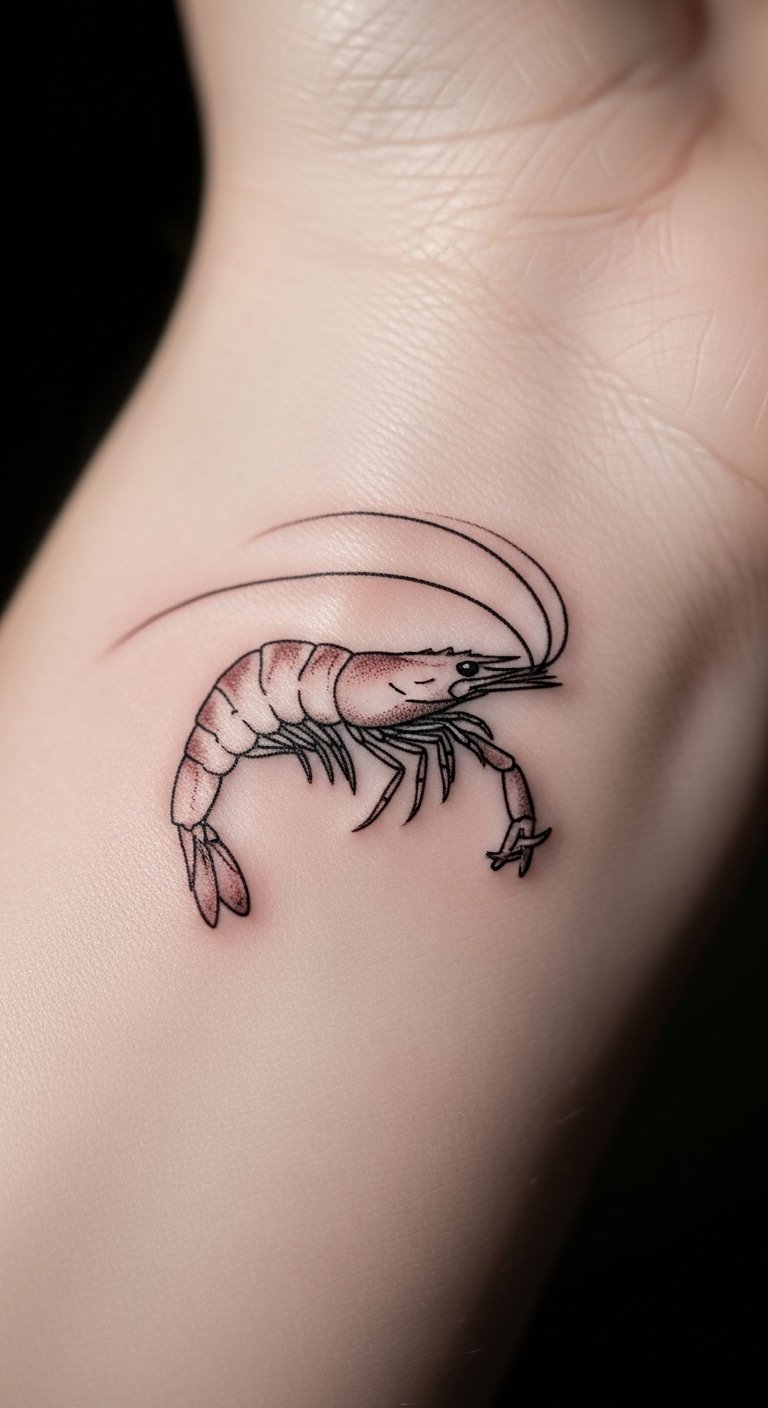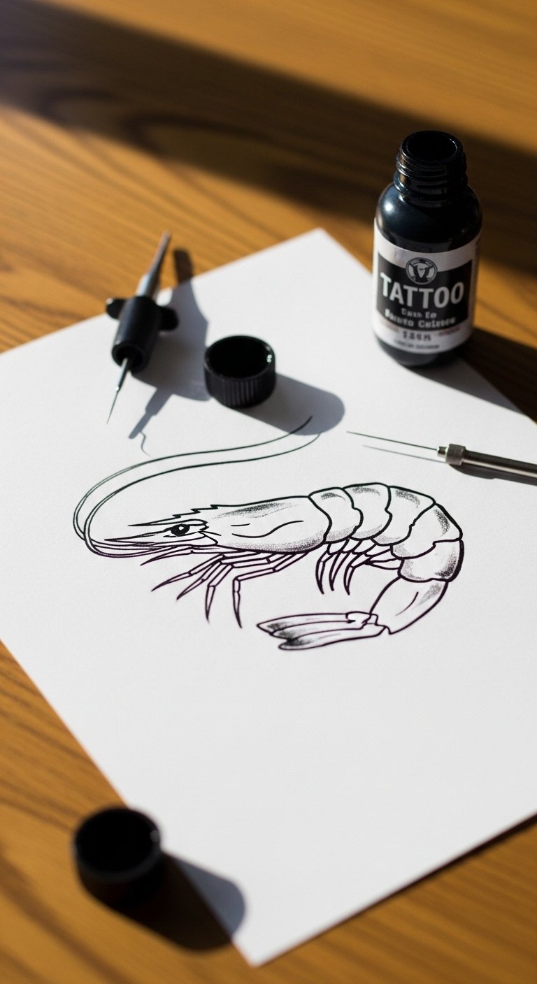 Think small and sleek for everyday wear. A minimalist shrimp tattoo uses basic lines to show a shrimp in motion. This design fits on your wrist or ankle. Start with a sketch on paper using a black pen. Practice drawing the shrimp’s curve to get the shape right. For a budget option, use temporary tattoo paper from a craft store. It costs less than $10 and lets you test the look. Add a personal twist, like a wave pattern, with free online templates. This style highlights adaptability in a subtle way. Once happy, visit a local artist for a quick session under $50. Keep it simple to avoid regret later.