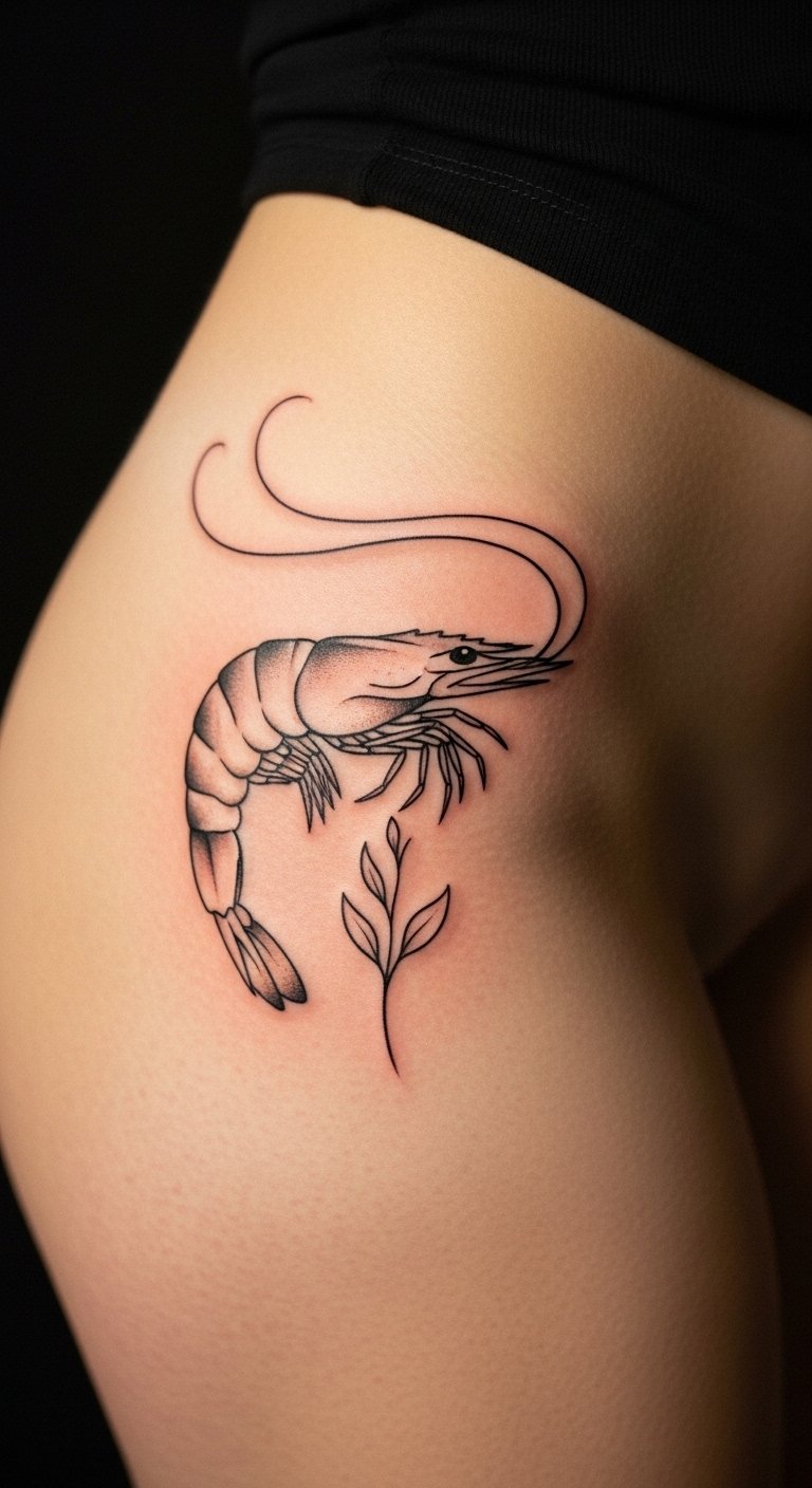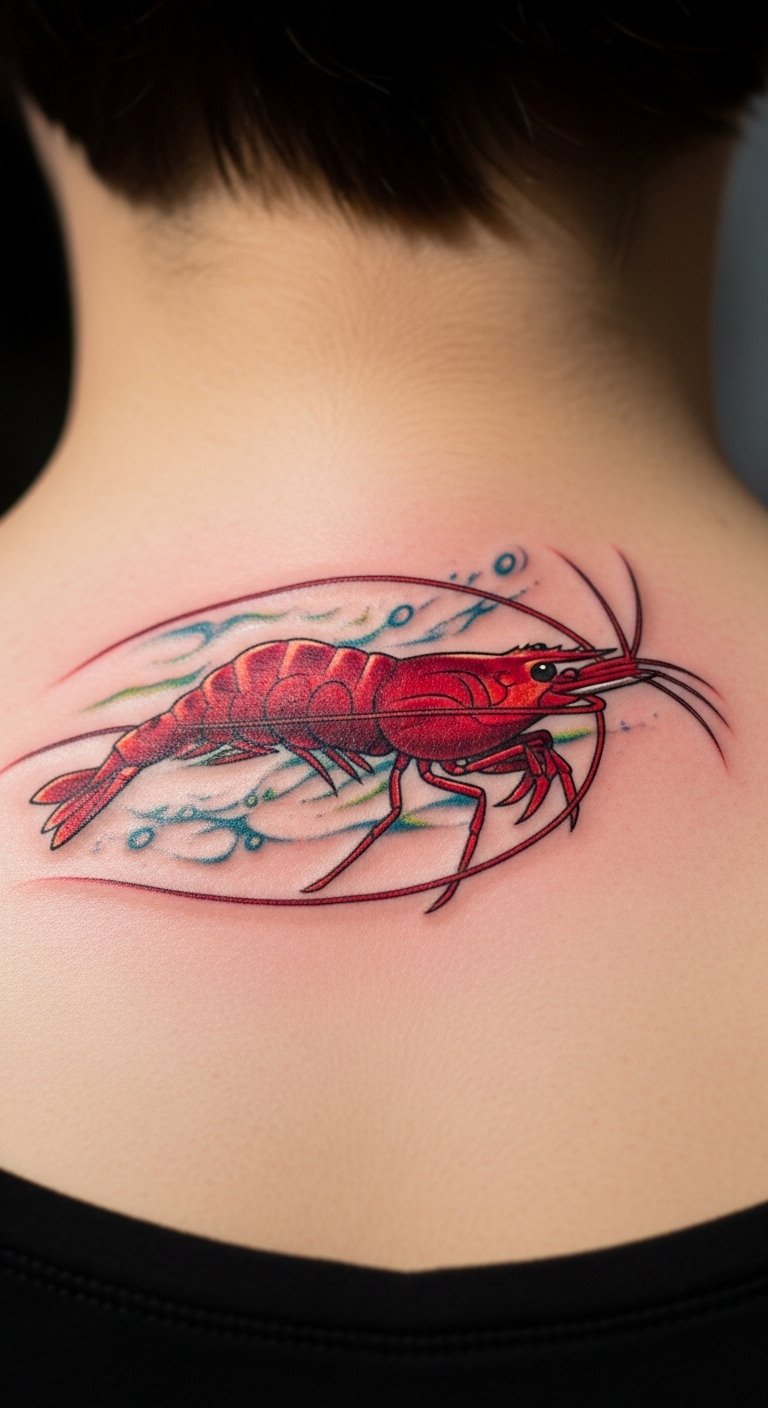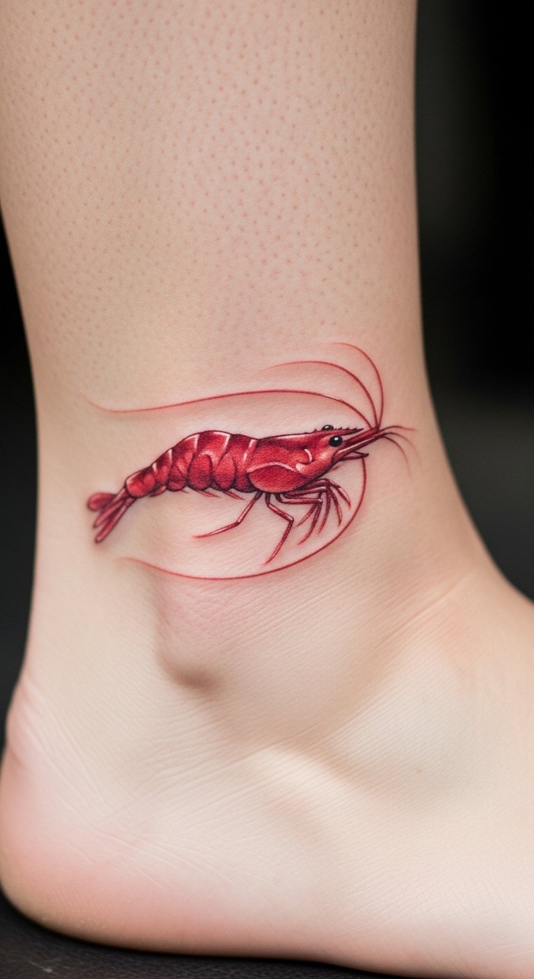 Think small and sleek for everyday wear. A minimalist shrimp tattoo uses basic lines to show a shrimp in motion. This design fits on your wrist or ankle. Start with a sketch on paper using a black pen. Practice drawing the shrimp’s curve to get the shape right. For a budget option, use temporary tattoo paper from a craft store. It costs less than $10 and lets you test the look. Add a personal twist, like a wave pattern, with free online templates. This style highlights adaptability in a subtle way. Once happy, visit a local artist for a quick session under $50. Keep it simple to avoid regret later.