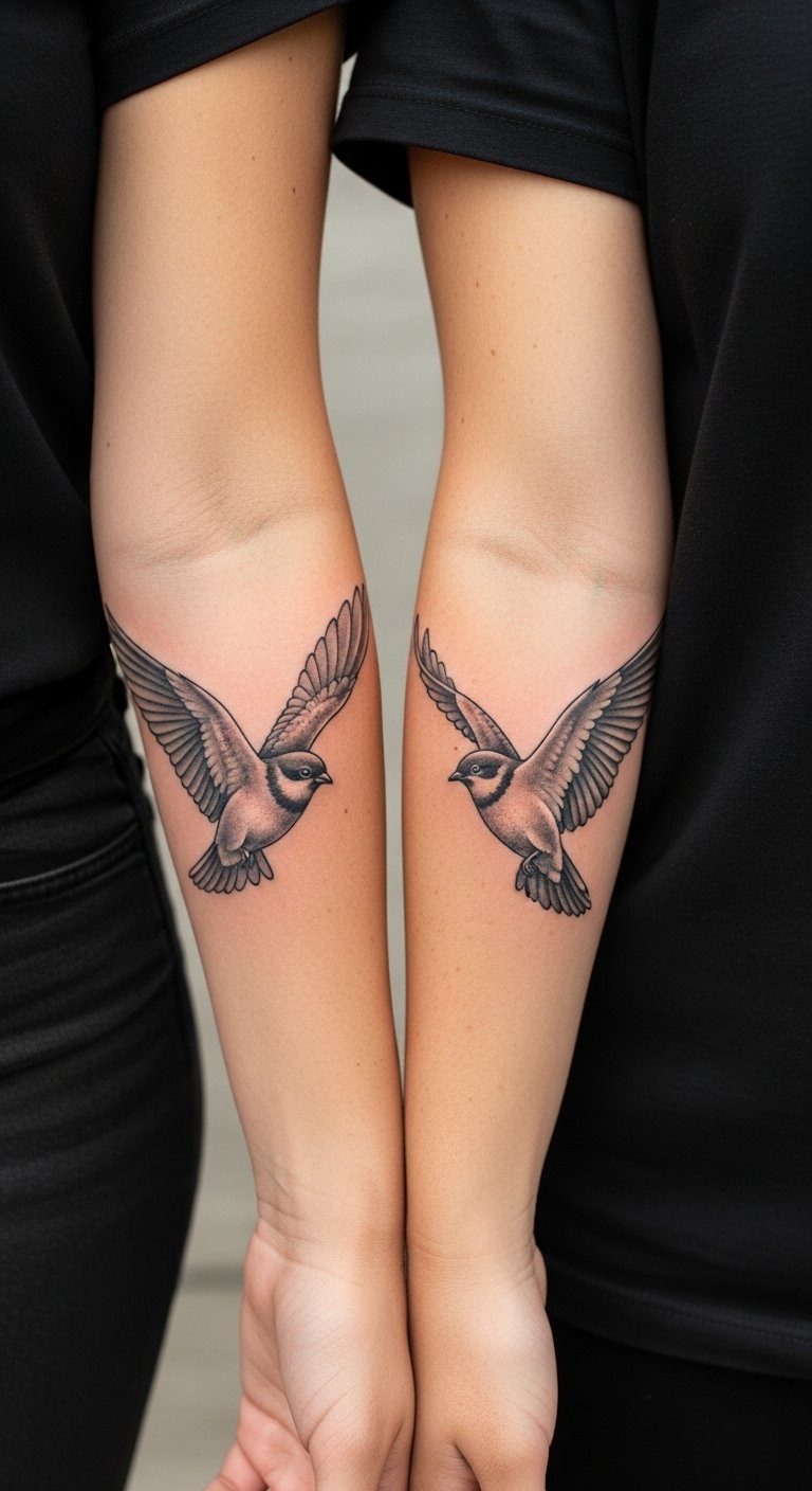 Animals such as birds or foxes make fun sibling pairs. Choose ones that reflect your personalities. Draw rough ideas with crayons at home. Keep them tiny for affordability. Artists offer these for $50 to $90. Find local options through free listings. Customize with a shared element, like wings. Test on paper first with free stencils. Place on collarbones for a subtle look. Use washable markers for DIY practice—cheap and easy. Talk it over with your sibling for input. These tattoos add playfulness to your bond. Go for outlines to cut costs. Share sketches online for quick advice.
