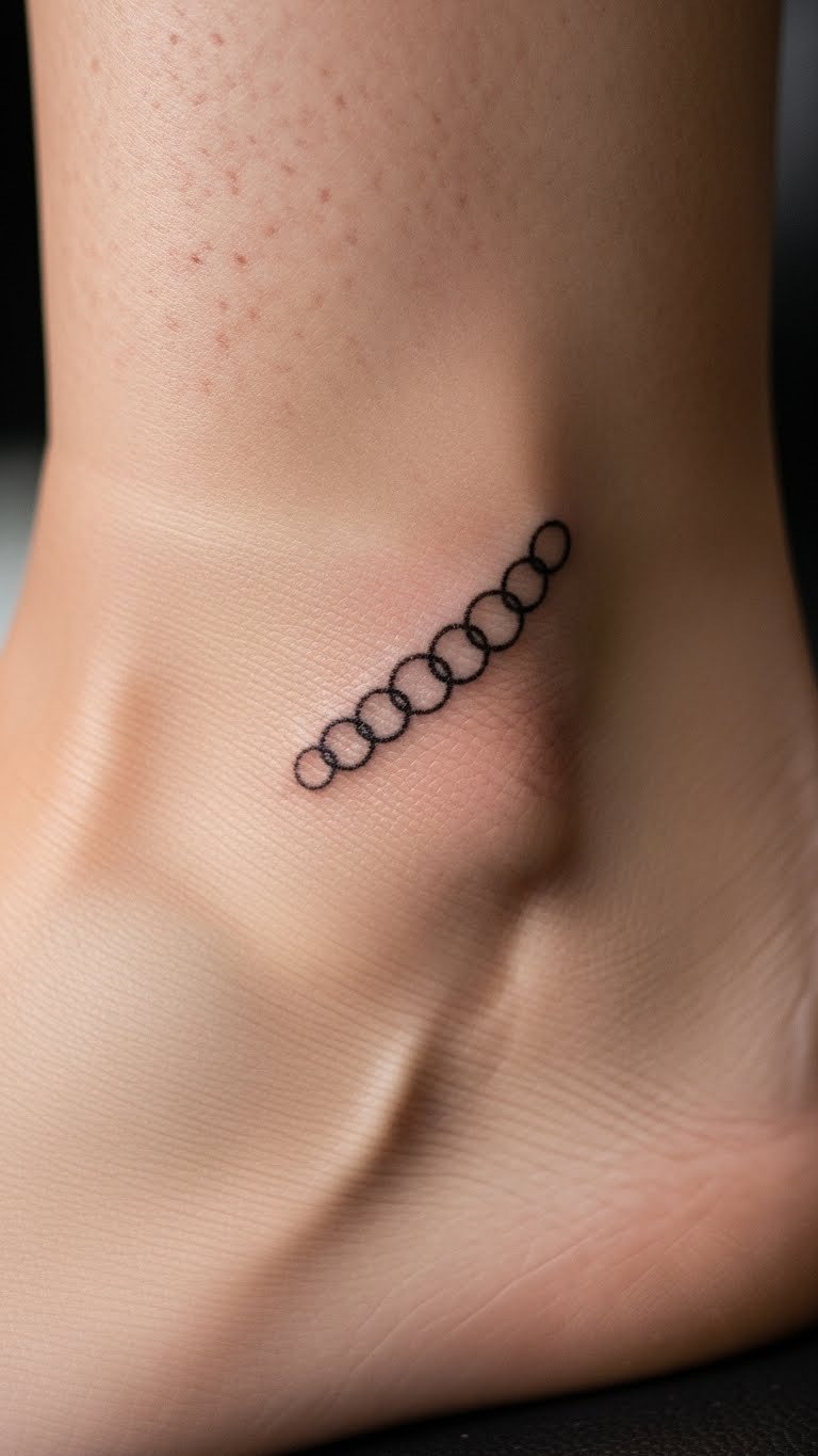An interlinked circle chain tattoo creates a connected feel. Wrap it around like a bracelet. Link circles with string to plan. Use free chain patterns online. Go for clean lines. Make it narrow to fit. This suits professional attire. Heal with affordable creams. Look for group session discounts. Stack with real chains.