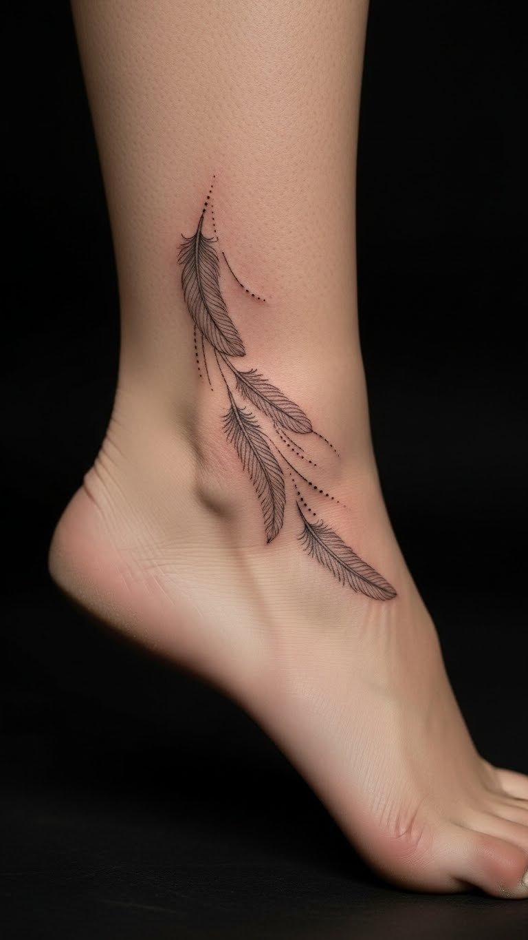 A feather trail tattoo flows with your movement. Position feathers to curve naturally. Draw feathers on paper to visualize. Download free feather stencils. Use light shading. Keep the trail short. This adds to boho styles. Protect with sunscreen. Check artist reviews for prices. Combine with ethnic jewelry.