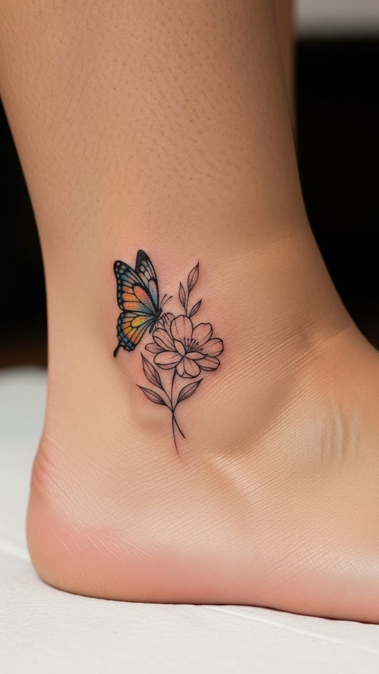 A butterfly wing tattoo symbolizes freedom and adds a light touch to your ankle. Position it along the side for natural flow. Sketch wings on your skin with temporary ink to preview. Download free butterfly stencils online to plan ahead. Stick with fine lines for subtlety. Keep the design under 1.5 inches to match the space. Use a hint of color for the wings to stand out. This works great with summer dresses. Apply healing ointment regularly. Look for artists offering package deals. Match it with a simple bracelet for style.