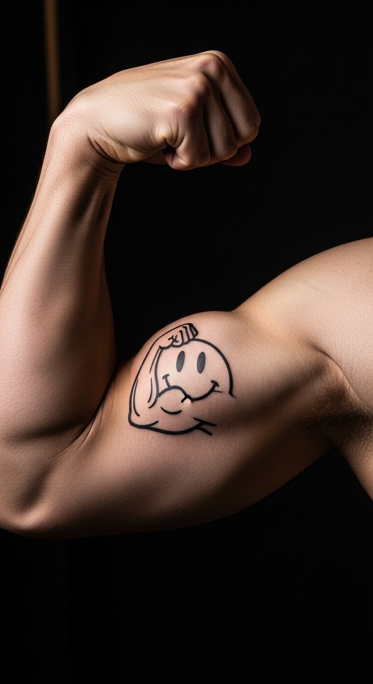Flex a smiley on your bicep for power. It shows off strength. Motivational. About $85. Draw on workout gear. Use bands for layout. Test with arm wraps. Wear t-shirts proudly. Let it pump you up. Keep flexes simple. Try at home.