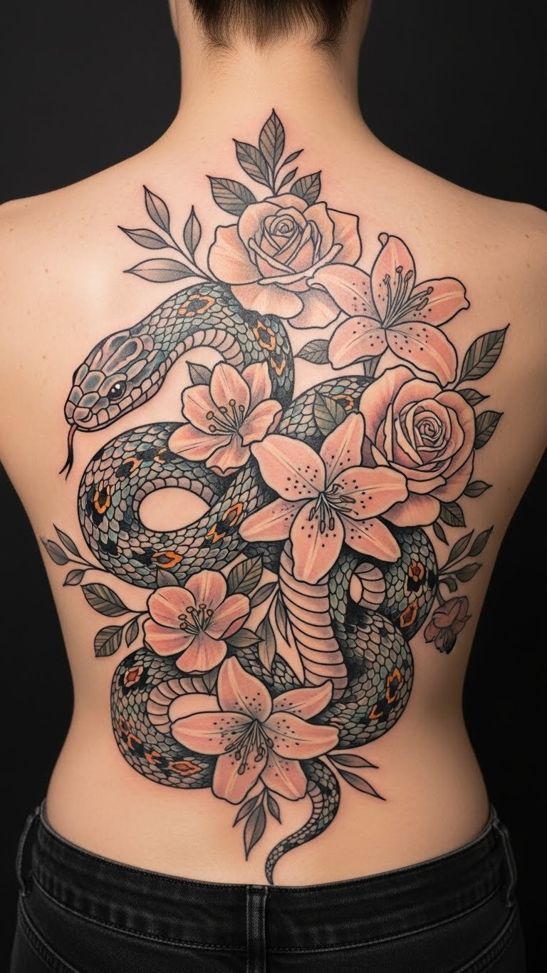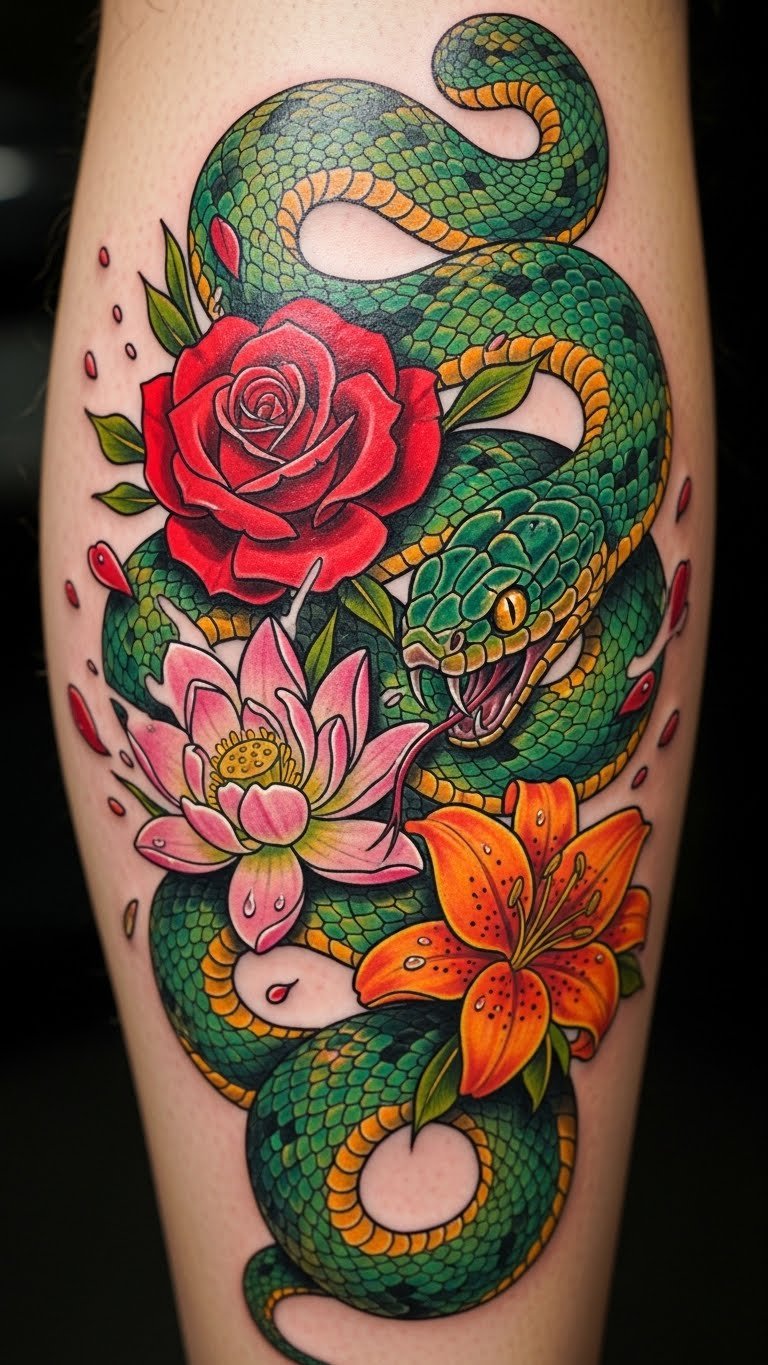 These snake with flowers tattoos offer ways to express yourself and feel stronger. Try sketching one idea today and see how it fits your life. Your next step could be that perfect ink.