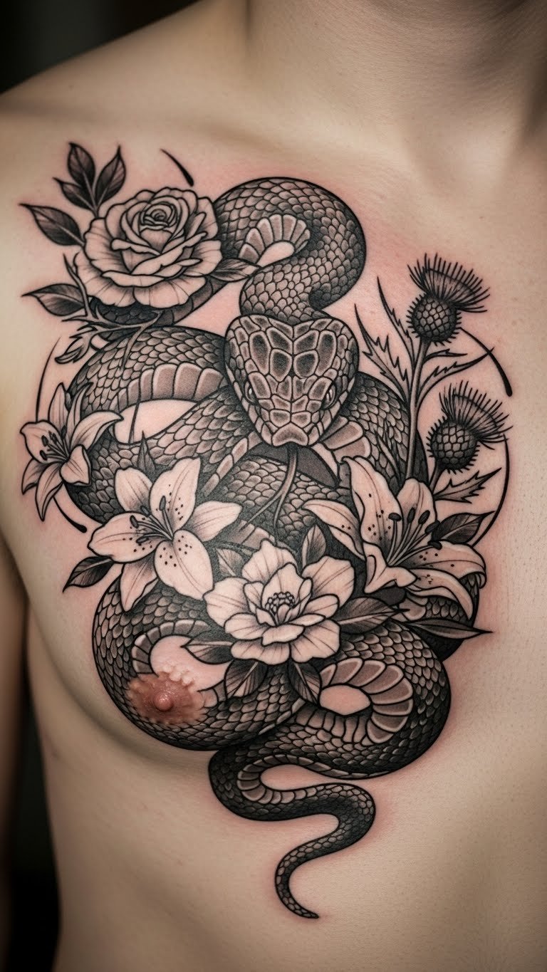 Snake with flowers tattoos blend danger and beauty in ways that make a statement. These designs tell stories of transformation and personal power, drawing from ancient symbols to create something uniquely yours. If you’re exploring ink that reflects your journey, these tattoos offer endless inspiration for feeling more confident and expressive.
