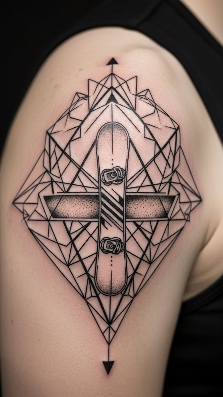 Add geometric shapes to your snowboard for a modern edge. Use straight lines to keep it cheap. Draw patterns on paper first for free. This helps refine your vision. Get geometric stencils online for DIY tests. Position on your shoulder. Layer shapes creatively. The design stays sharp. Use apps to plan it out.