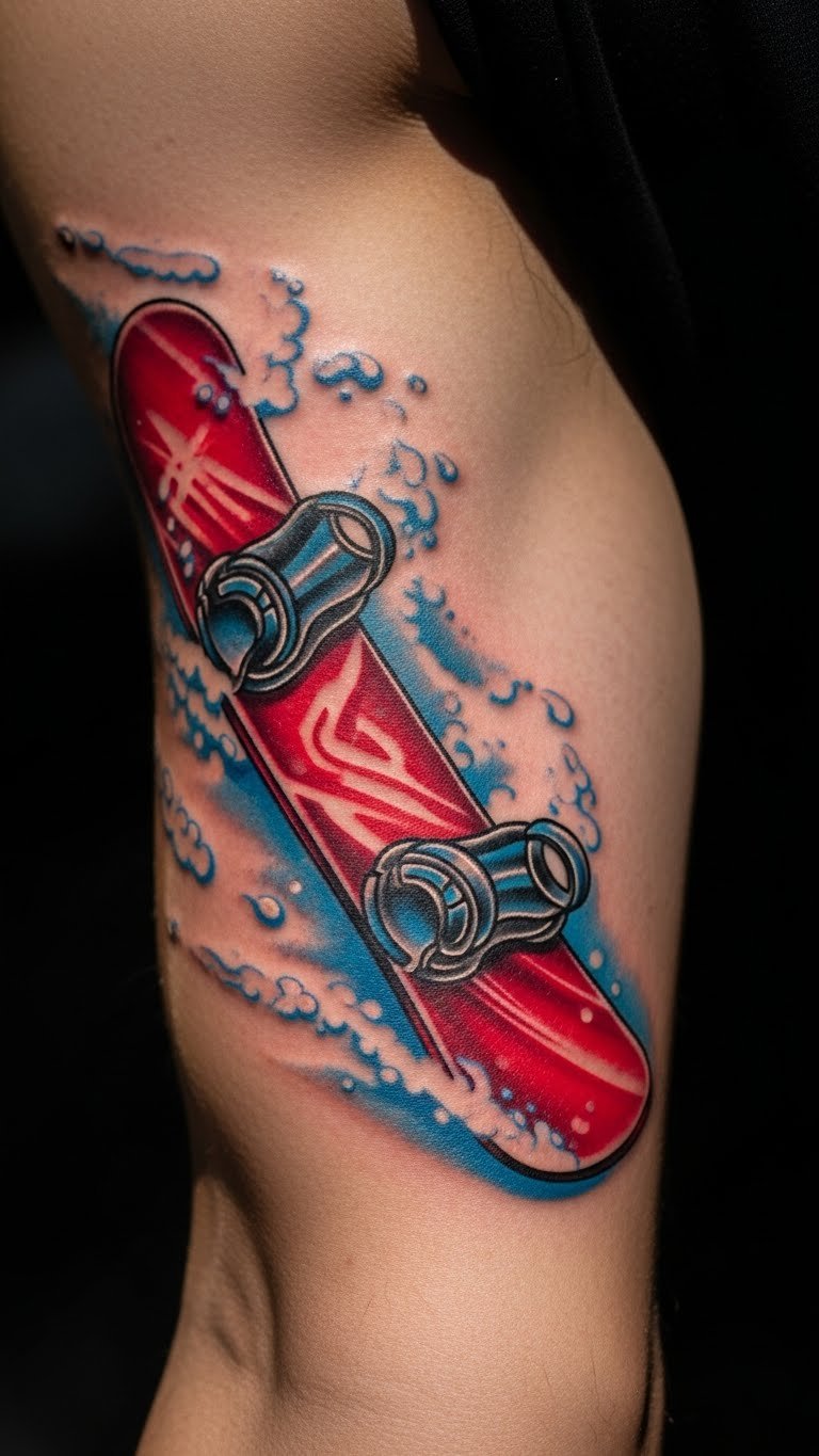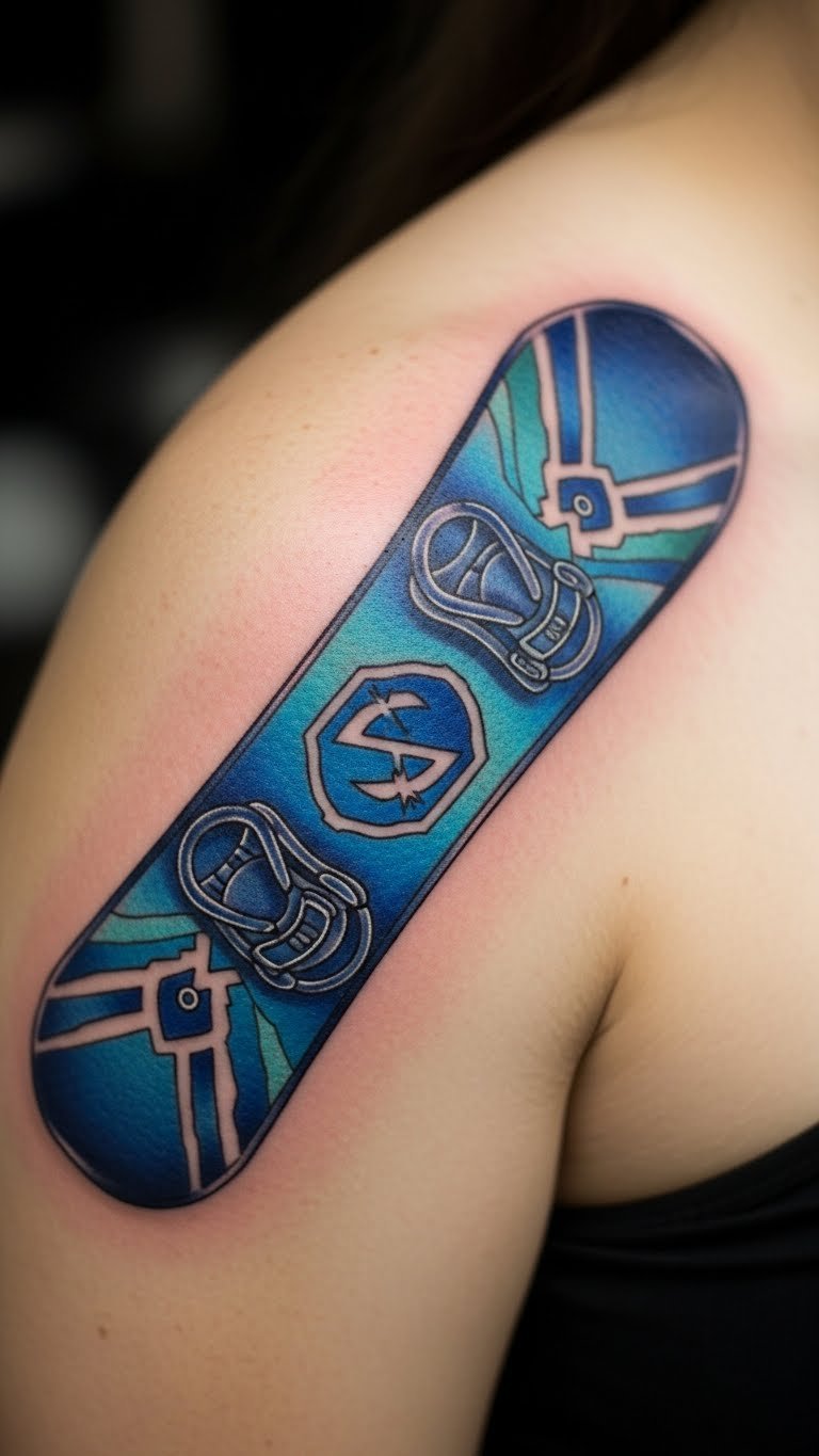 Go retro with pop art colors on your snowboard tattoo. Pick a few hues to keep costs low. Design at home using free graphic apps, then print for your artist. This avoids pricey revisions. Try colorful temporary tattoos from variety stores; they cost less than $10. Place on your bicep for impact. Use pop colors boldly. This adds fun to your ink. For care, cover during sunny days to maintain vibrancy. Start small for affordability.