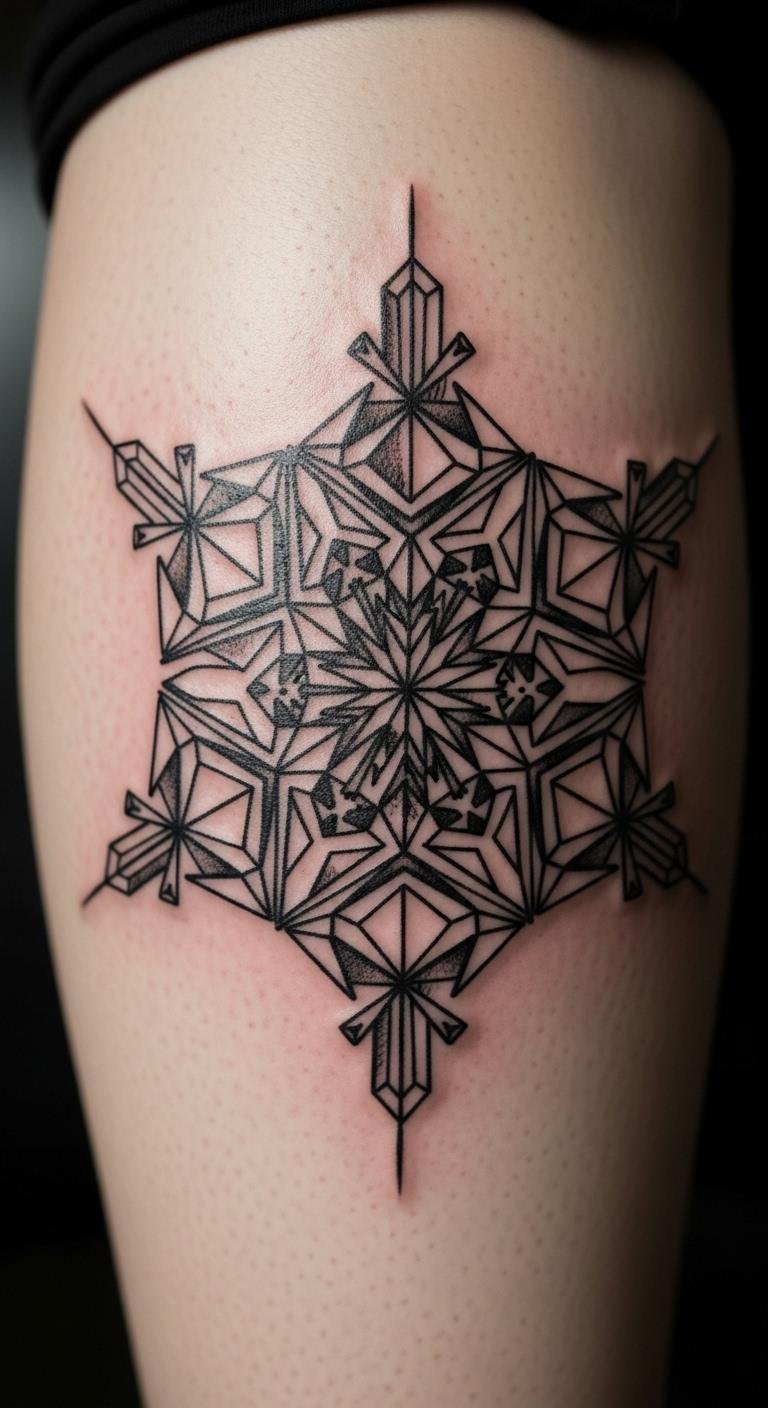 A geometric snowflake array brings sharp angles and patterns to life. Think of interlocking shapes on your leg for a modern look. Start by printing free templates online and tracing them with a ruler. This builds your idea step by step. It’s a quick activity at your desk. Save money by visiting tattoo shops during sales or walk-in days. They cut prices for simple designs. For DIY fun, use sticker paper to create a temporary version. Grab supplies for around $2 at a craft store. Stick it on and adjust as needed. Opt for areas like your back that you can hide. Bold the advice: use stickers for trials. This method lets you play without pressure. Add a personal element, like extra lines for symmetry. The final tattoo stands out as bold and structured.