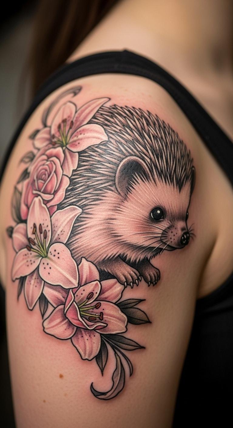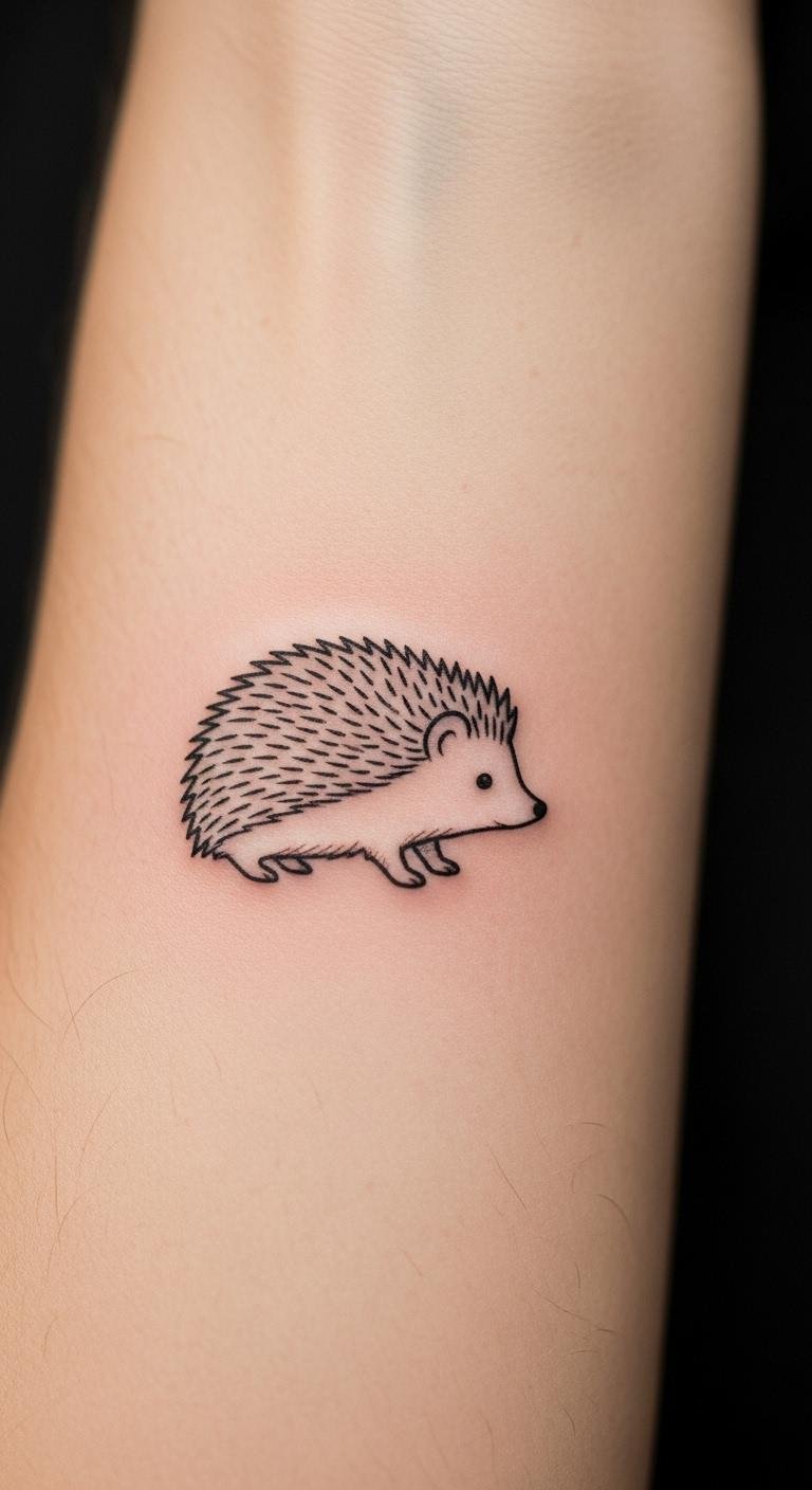 Detailed Hedgehog Outline Tattoo