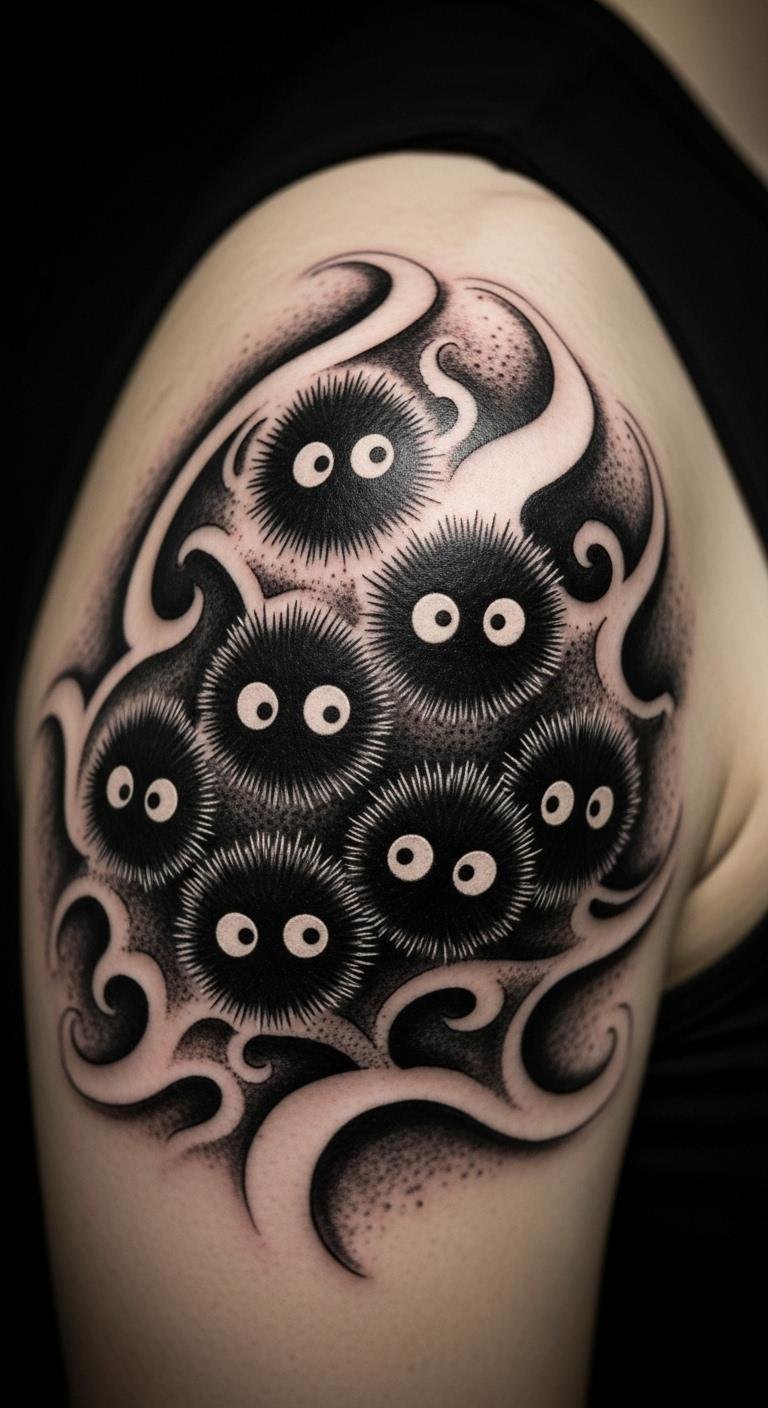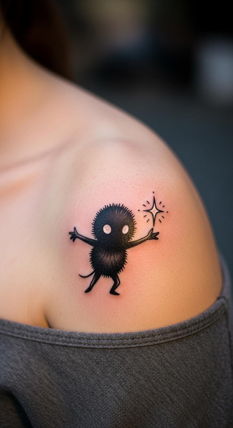 Soot sprite tattoos bring the magic of Studio Ghibli to life on your skin, capturing the playful spirit of those little black creatures from films like My Neighbor Totoro and Spirited Away. If you’re drawn to whimsical designs that spark joy and curiosity, these tattoos offer endless inspiration. Dive into a world of creativity and find ideas that fit your style, whether you’re a first-time inker or a seasoned fan.