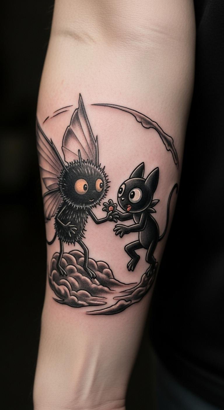 Pair a soot sprite with Totoro for a fun mix. Draw them side by side on paper. Use free apps to combine images. This saves money on professional help. Place it on your forearm for easy viewing. Bold the key: fun mix. Keep sentences short: Grab a pencil and sketch. Add colors with markers if you want. Aim for balance in the design. It’s beginner-friendly. Cost under $10 for materials. Test it on your skin with temporary ink. Make it your own story.