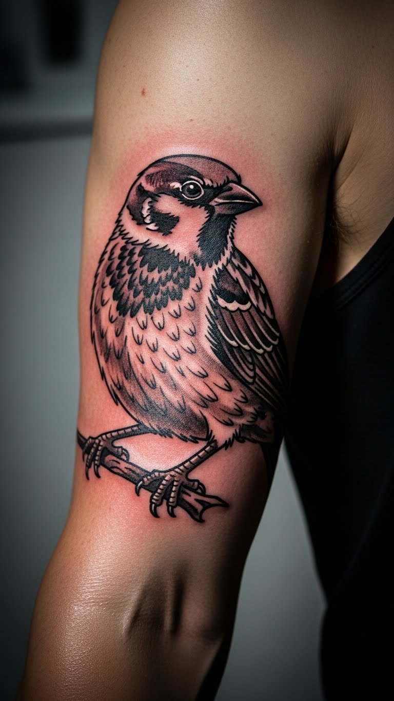 A shoulder sparrow stands for resilience. It carries hope through tough times. Artists charge $70. Outline your burdens first. Use shoulder pads for mock-up. Tattoo for support. Add storm symbols. This design builds strength.