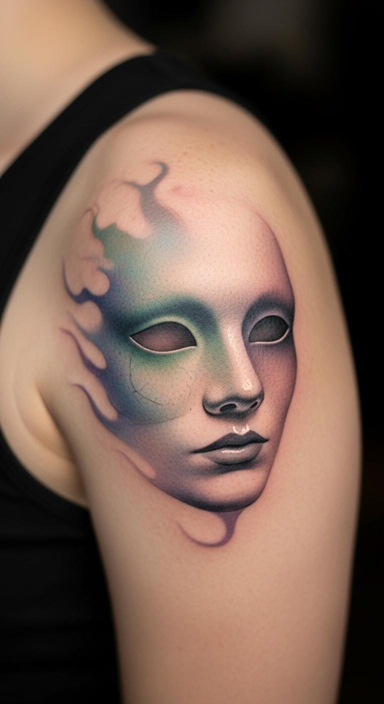 No-Face in watercolor blends emotions. Ink it on your shoulder. Blend paints at home. Use blended temporaries. Mix in your feelings. Soft hues save money. Bold key: blend art. DIY: Blend colors on paper. Under $5. It flows creatively.