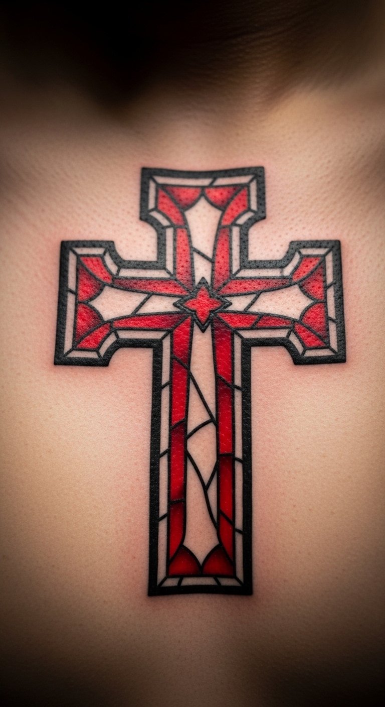 A cross stained glass tattoo adds meaning to your chest, like a quiet nod to beliefs. Sketch a basic cross on paper using a pencil you already own. Keep it straightforward for easy tweaks. This style highlights clean lines and colors. Try free online tools to color your design. Choose spots like your forearm for personal access. Include elements that speak to you, such as small accents. Save money by planning ahead. Find inspiration in old photos or books. This tattoo becomes a daily symbol. Start with simple drawings to prepare.