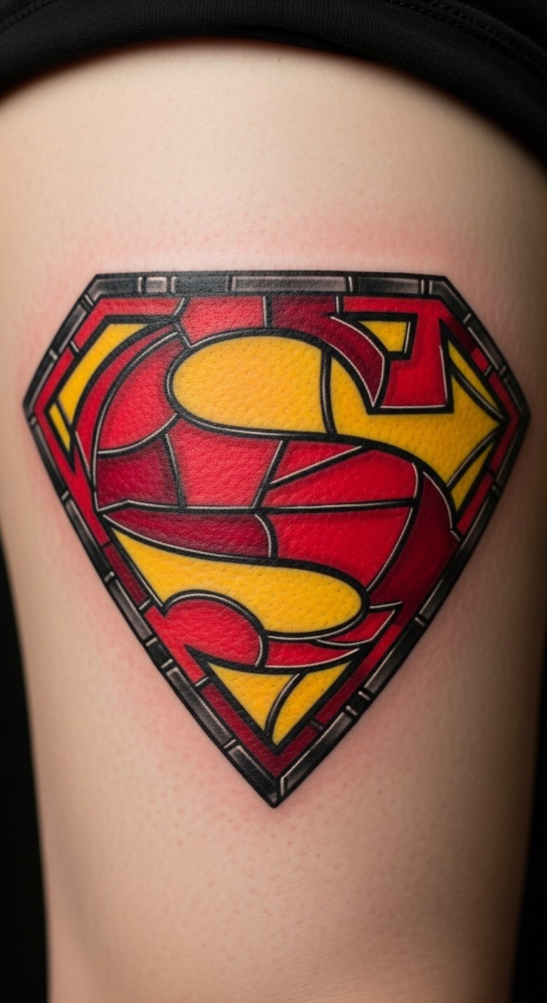 Reimagine heroes in stained glass on your thigh for a fun twist. Sketch your favorite character on paper with items you have. Keep outlines simple for accuracy. This style mixes colors for excitement. Use free apps to adjust designs. Put it on visible spots like your leg. Include personal changes, such as colors you love. Budget by avoiding extras. Look at comics for inspiration. This tattoo makes everyday life epic. Start with basic sketches to plan.