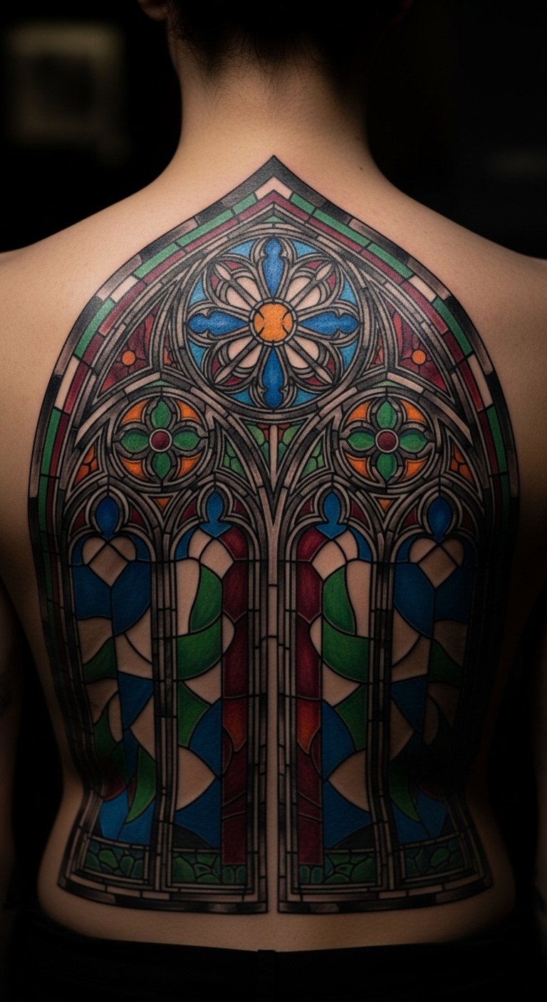 Gothic stained glass tattoos feature arches on your back. Draw arches on paper simply. Evoke history. This design stands tall. Try free templates. Put it for impact. Add arch details. Save with basic plans. Look at architecture. This tattoo echoes past. Sketch arches quickly.