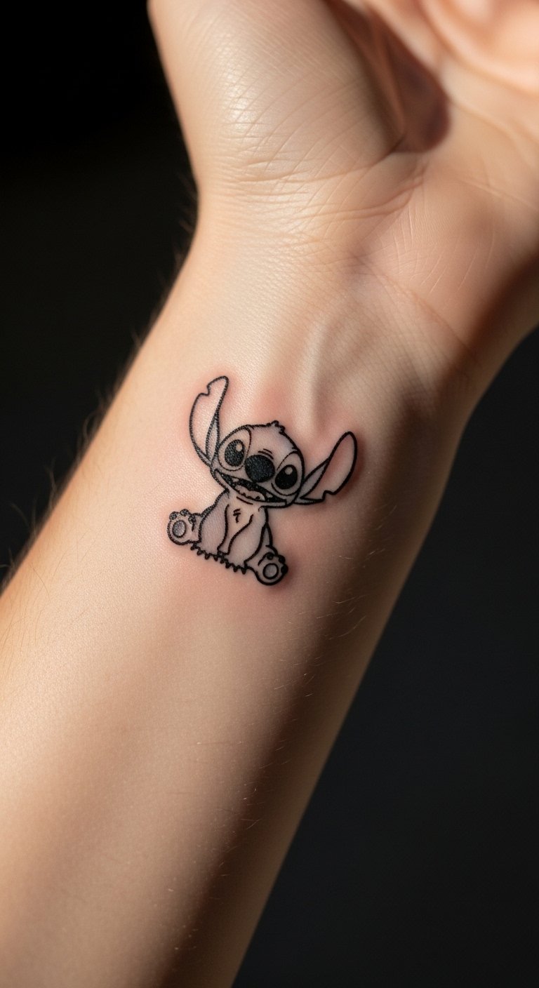 Gradient shading on Stitch creates depth. It blends colors smoothly for a modern feel. Experiment with colored pencils at home first. Free videos show how to mimic it. This makes planning affordable. Choose a wrist for everyday wear. Studios often have introductory prices. Add a glow effect for pop. Expect a focused session. Test with makeup blends. Your tattoo looks fresh with sun avoidance. It’s simple yet striking.