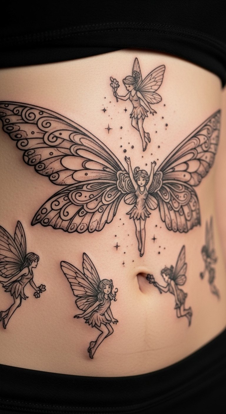 Fairy tattoos bring magic to your stomach area. Elements like wings or sprites add a playful touch. They spark imagination. Draw fairy sketches with colored pencils as a DIY step. Look for affordable sessions online starting at $80. Keep designs compact to save money. Free apps offer fairy templates for practice. Use simple lines for a beginner-friendly look. This style stands out at events. Choose colors that match your skin tone.