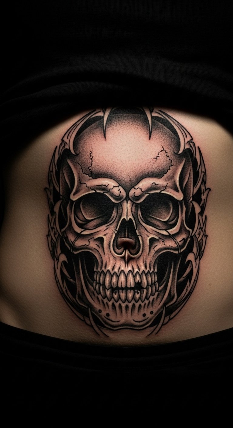 Gothic skulls add an edgy feel to your stomach. Skulls with bats create mystery. It expresses attitude. Draw skulls on paper for a DIY start. Find deals at tattoo shops for $90. Opt for outlines to save money. Online tutorials offer ideas. Black ink enhances the effect. Attend night events for inspiration. This design stands strong and bold.