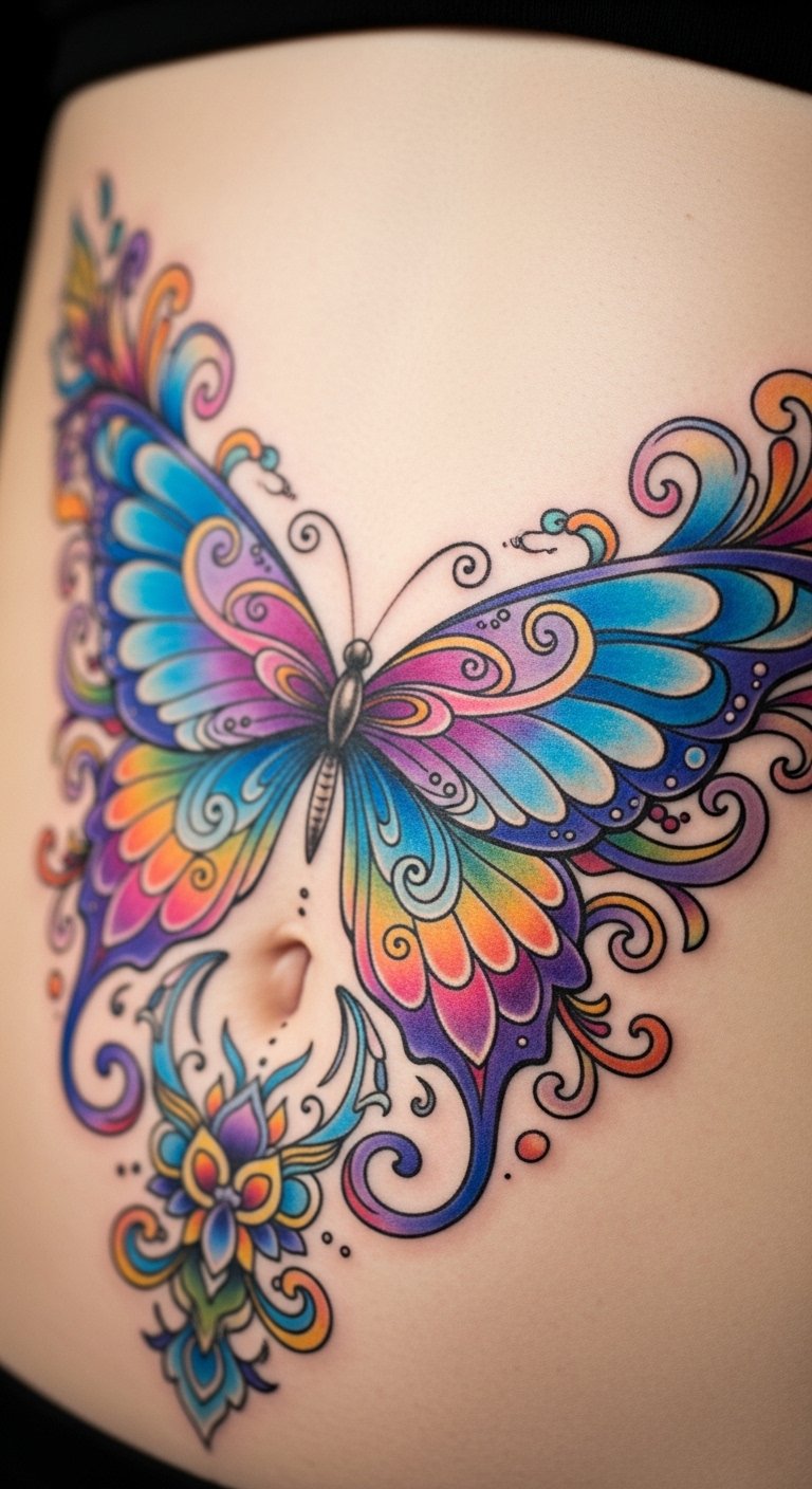 Butterfly wings transform your stomach. Colors show growth. It feels transformative. Color butterflies at home. Artists price at $90. Add flair.