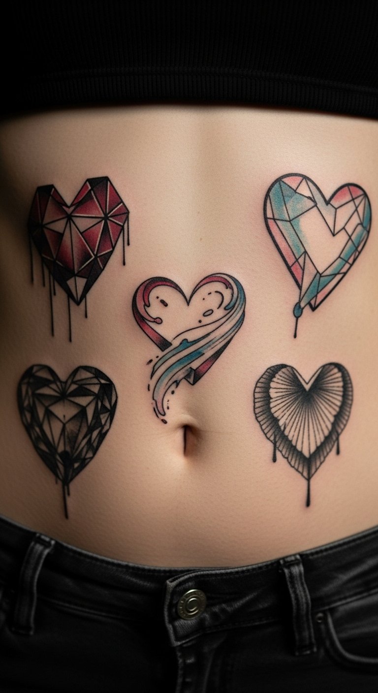 Hand-poked shapes give a rustic vibe to your stomach. Dots or lines create simplicity. It’s a gentle option. Try poking designs on fruit at home for practice. Look for artists who do it cheaply, around $70. Stick to small areas for savings. Free guides online teach basics. Black ink fits this style. Experiment in your kitchen. This method feels accessible and quick.